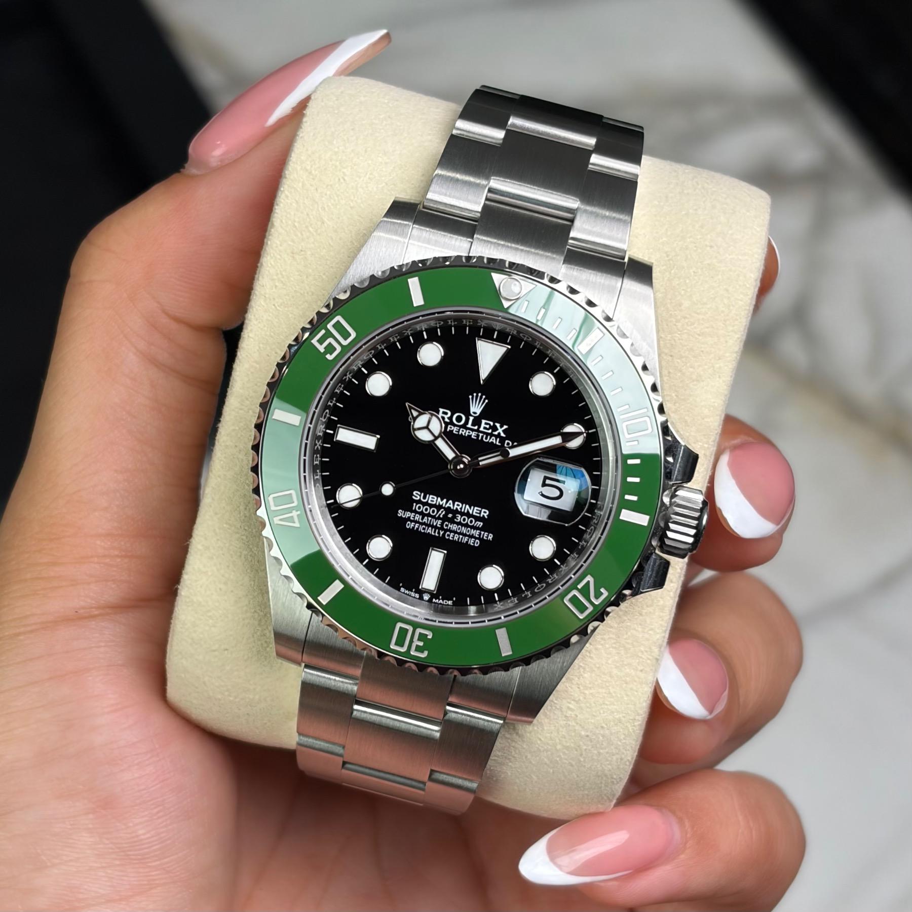 Timestamp: https://imgur.com/a/LgZ2Aco Album: https://imgur.com/a/FIm5rnu ________________________________________________________________________________________ The Rolex Submariner Date 41 “Starbucks” 126610LV (2025) is a modern icon, pairing the classic black dial with a vivid green Cerachrom bezel for a bold yet timeless look. Built in Oystersteel with a robust 41mm case and powered by Rolex’s in-house automatic movement, it delivers legendary dive capability alongside everyday wearability. This example is brand new and comes complete with its original box and papers, making it an exceptional full-set offering. This watch measures 41mm diameter, 47.5mm lug to lug, and 12.3mm thick. **Condition:** Brand new condition. See pictures for the most accurate representation of condition. **Includes:** This example comes as a complete set with original box and papers. _________________________________________________________________________________________ **Price:** **16,000** **Shipping:** Free shipping to US addresses! I'm willing to ship internationally at an additional cost to the buyer. *Local pickup available at our Scottsdale, AZ office. Sales tax may apply.* **Payment:** Wire, Zelle, Crypto, or CC (with 4% fee). **Trades:** Yes, open to trades up or down for modern Rolex, AP, or Patek Philippe. Thank you for your consideration and feel free to reach out with any questions! -Aneisa