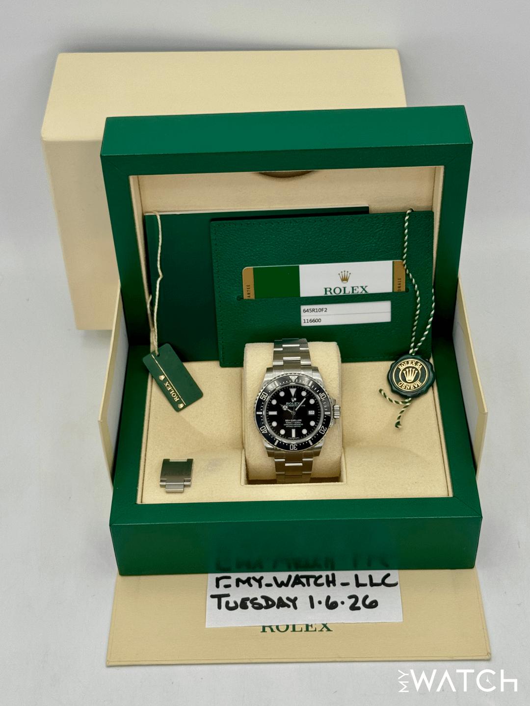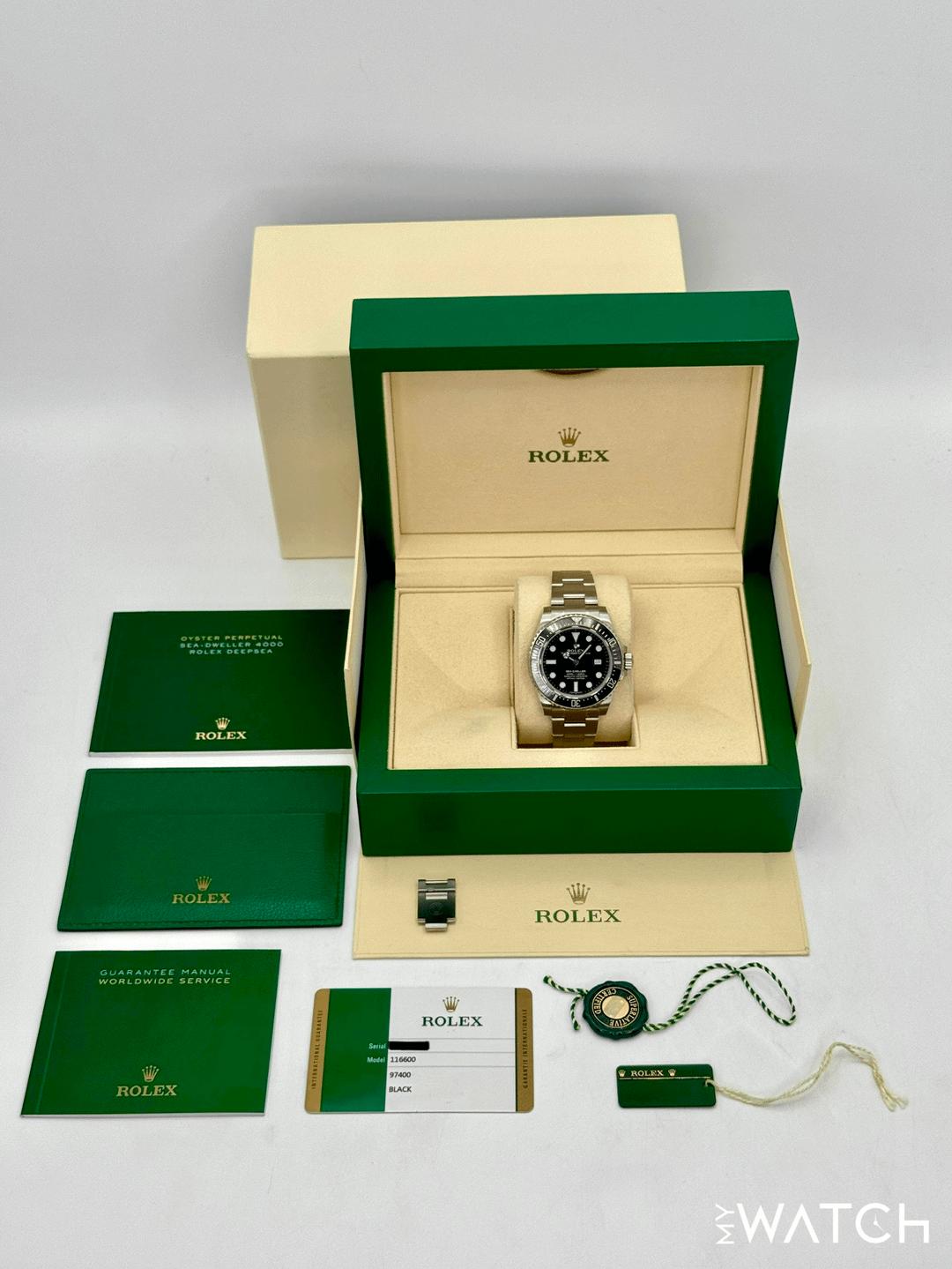 🔵**2017 Rolex Sea-Dweller 4000 "SD4K" 40mm 116600 Stainless Steel Oyster Bracelet Black Dial** 🔵**TRADE or SELL us your luxury watch, all brands considered. Message me details.** **Includes the following:** **✔️Original Rolex Double boxed** **✔️Box and Papers - Yes** **✔️Warranty card dated 2017** **✔️Manual and Warranty booklets** **✔️Green Hang Tags included** **✔️Size: 8.0inch wrist (Full Links)** **✔️Diver extension included** **✔️Rare. Only 3 year run** **✔️Watch is in excellent overall condition. Please see photos for details.** **✔️Trades welcome** Business Name: **My Watch LLC** LOCATION: Oak Park, Michigan ✔️[MyWatchLLC.com](http://mywatchllc.com/) for current inventory ✔️Google Business Listing [https://g.co/kgs/Cmd6FPW](https://g.co/kgs/Cmd6FPW) ✔️Business Hours M-F 9-6 ✔️Facetime/Video chat/calls welcome to view the watch interested. ✔️Contact: 248-422-0909 via text or call for quickest response. 🟢TERMS: Visit [MyWatchLLC.Com](http://mywatchllc.com/) for payments accepted 🟢REFERENCES/REVIEWS: We are well reviewed on all platforms from google, trust pilot, rolexforums, additionally we have 300+ reference in multiple FaceBook watch groups, reference checks welcome. 🟢SHIPPING: If you are not local, we offer Fully Insured FedEx overnight shipping in the USA for a fee. International shipping available. [https://mywatchllc.com/products/2017-rolex-sea-dweller-4000-sd4k-40mm-116600-black-dial](https://mywatchllc.com/products/2017-rolex-sea-dweller-4000-sd4k-40mm-116600-black-dial)