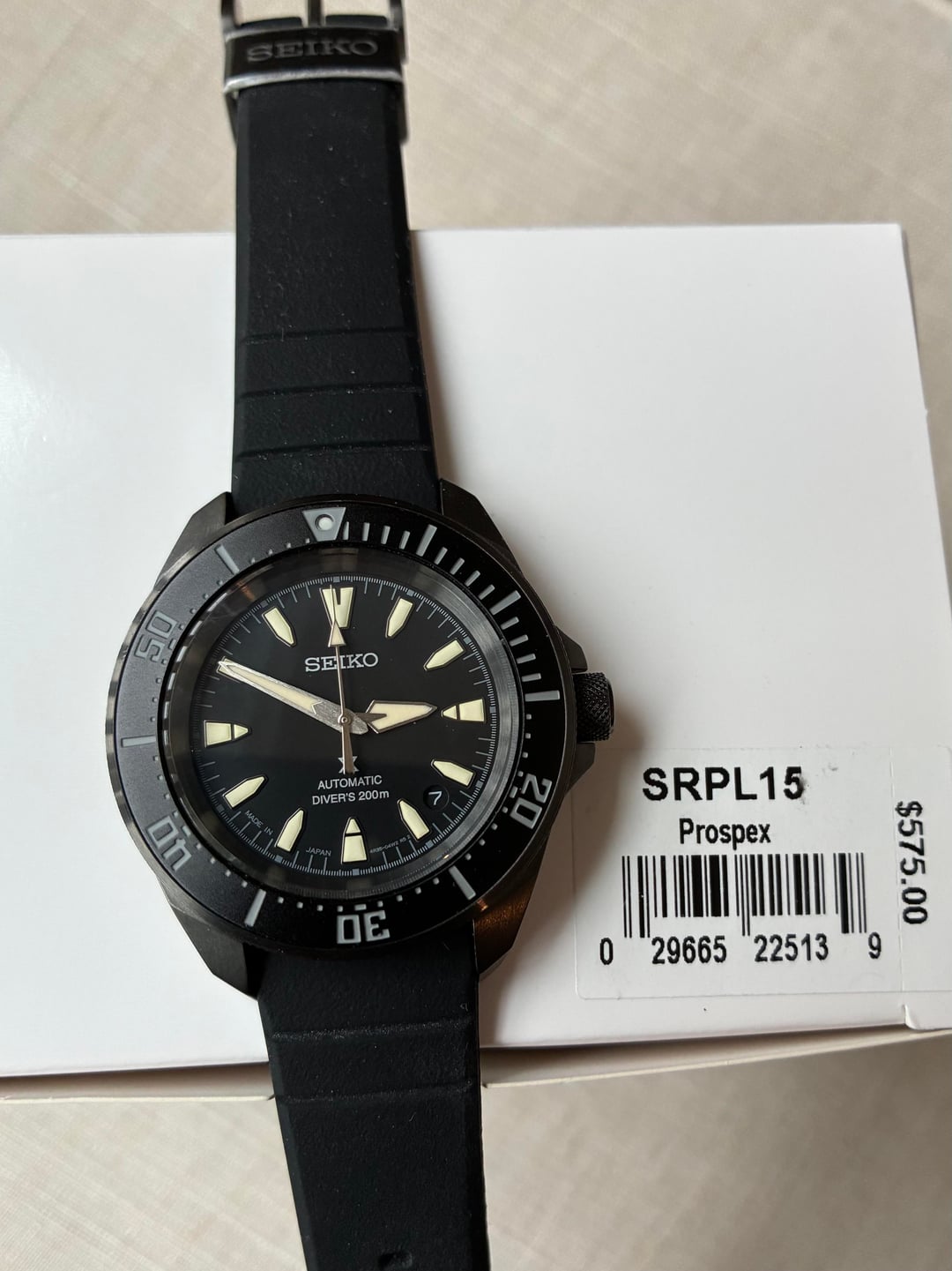 Hello WatchEx - Putting up a 2 month old Seiko SRPL15, the Mini Samurai. Excellent condition. Minimal wear time. Very clean. Everything lines up, crown & bezel action all good, and timekeeping is excellent. I’m the original owner. Too many watches. No trades at this time. Thank you! Nice alternative to the full size Samurai. Really a different design altogether. Still has the presence while slipping under cuffs with a superior fit. This has the PVD like hard coating. Nice lume too. Shipped promptly in CONUS via USPS for **$325.00 OBRO** I accept PayPal F & F, G & S, or Zelle. 18 yrs of positive feedback on WatchUseek, and my WatchEx transactions in good standing. Movement: Seiko 23-Jewel 4R35 Automatic (self-winding and hand wind) Case: Stainless steel, 41.7x12.3mm thick. 49.5mm lug to lug. Back: Screwed-down Caseback Crystal: Flat Hardlex Band: Silicone Band. 20mm Water Resistant: 200 meters Weight: 100 grams Thank you for looking! Drop a chat, for any questions.