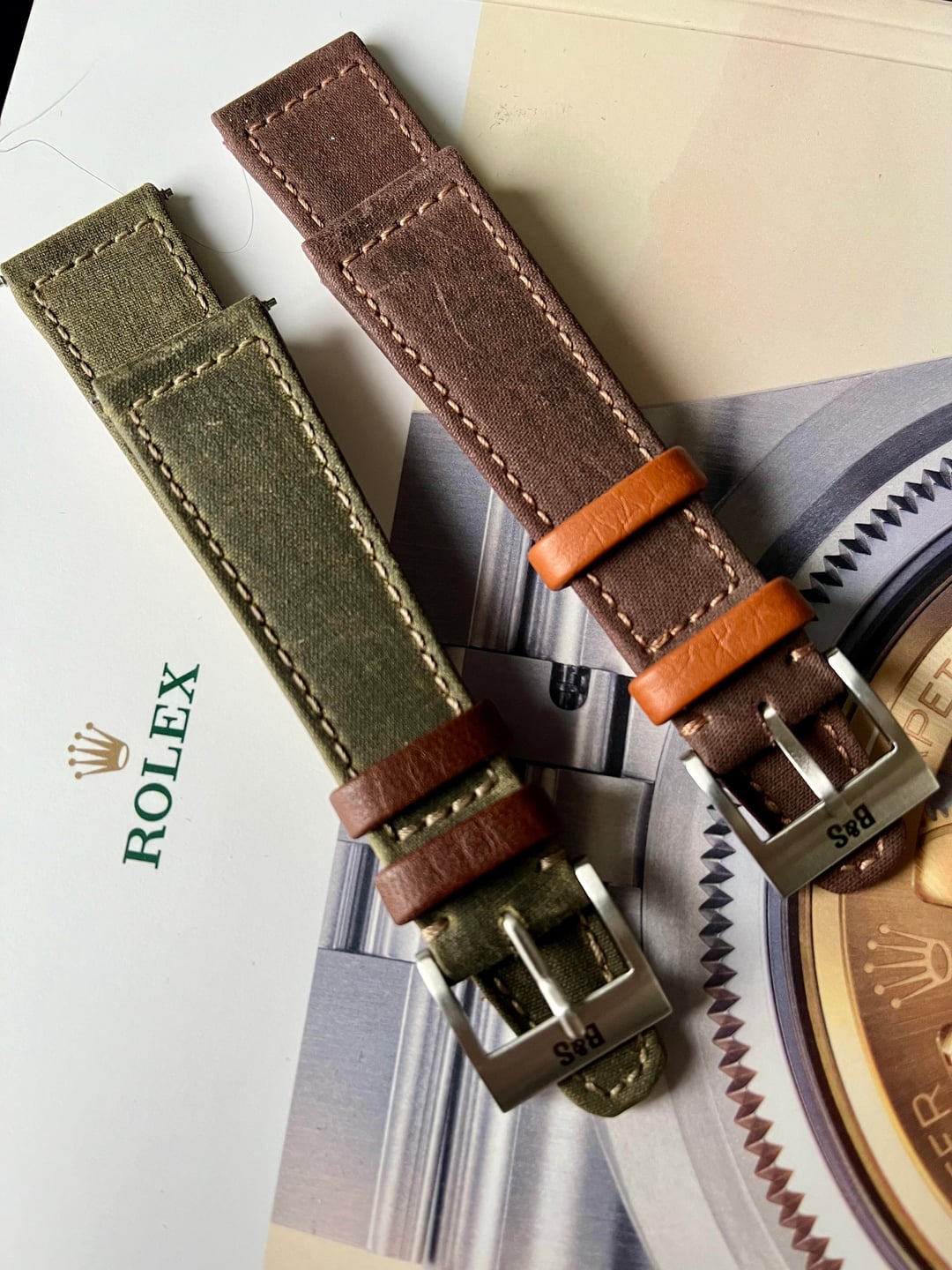 **The Story** \- [https://bulangandsons.com/blogs/lifestyle/bulang-loves-barbour?srsltid=AfmBOoojXu484g91iFrlk1uFbr8IyRhL5XoQ2uZ25GE\_BRS39YybNmFE](https://bulangandsons.com/blogs/lifestyle/bulang-loves-barbour?srsltid=AfmBOoojXu484g91iFrlk1uFbr8IyRhL5XoQ2uZ25GE_BRS39YybNmFE) **The Highlands Watch Strap** \- Made of Vintage Barbour Fabric [https://bulangandsons.com/products/the-highlands-watch-strap-made-of-vintage-barbour-fabric-jubilee-edition](https://bulangandsons.com/products/the-highlands-watch-strap-made-of-vintage-barbour-fabric-jubilee-edition) **The Manchester Watch Strap** \- Made of Vintage Barbour Fabric [https://bulangandsons.com/products/the-manchester-watch-strap-made-of-vintage-barbour-fabric-jubilee-edition](https://bulangandsons.com/products/the-manchester-watch-strap-made-of-vintage-barbour-fabric-jubilee-edition) Regular Length: 115 + 75 cm (4.53 + 2.95 in.) Lug width 20 mm = 16 mm buckle The strap has a thickness of \~2,4 mm (0.094 in.). Both are like New. **$299 Shipped Pair.** Both are as New. Save over New. Pics & timestamp in listing. Zelle or Venmo FF