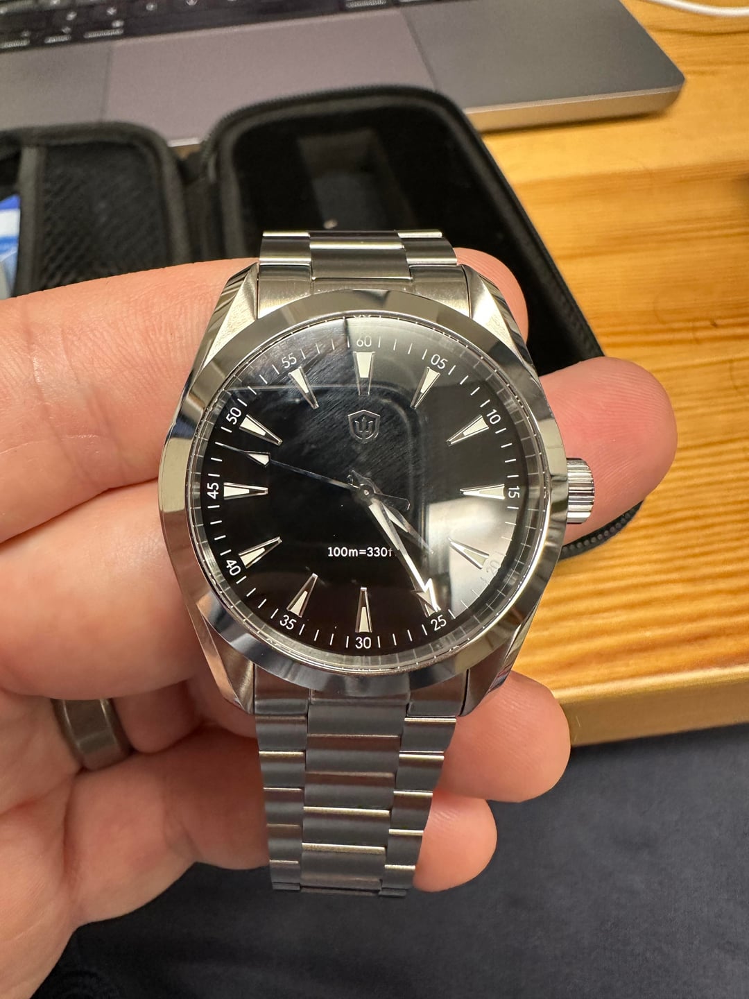 Selling my Watchdives WD0006 Black Enamel which I bought on watchexchange a few months ago - I mostly just bought this to get a sense of how a watch this size would wear on me, and now it's ready for its next owner! Has a few minor scratches on the bezel and clasp, but remains a really good bargain. Includes all original accessories (all original links). Asking $80 with free shipping to the US. I’ll pay the PayPal goods services fee on my end. Ships from New York via ground shipping (probably either USPS or UPS).