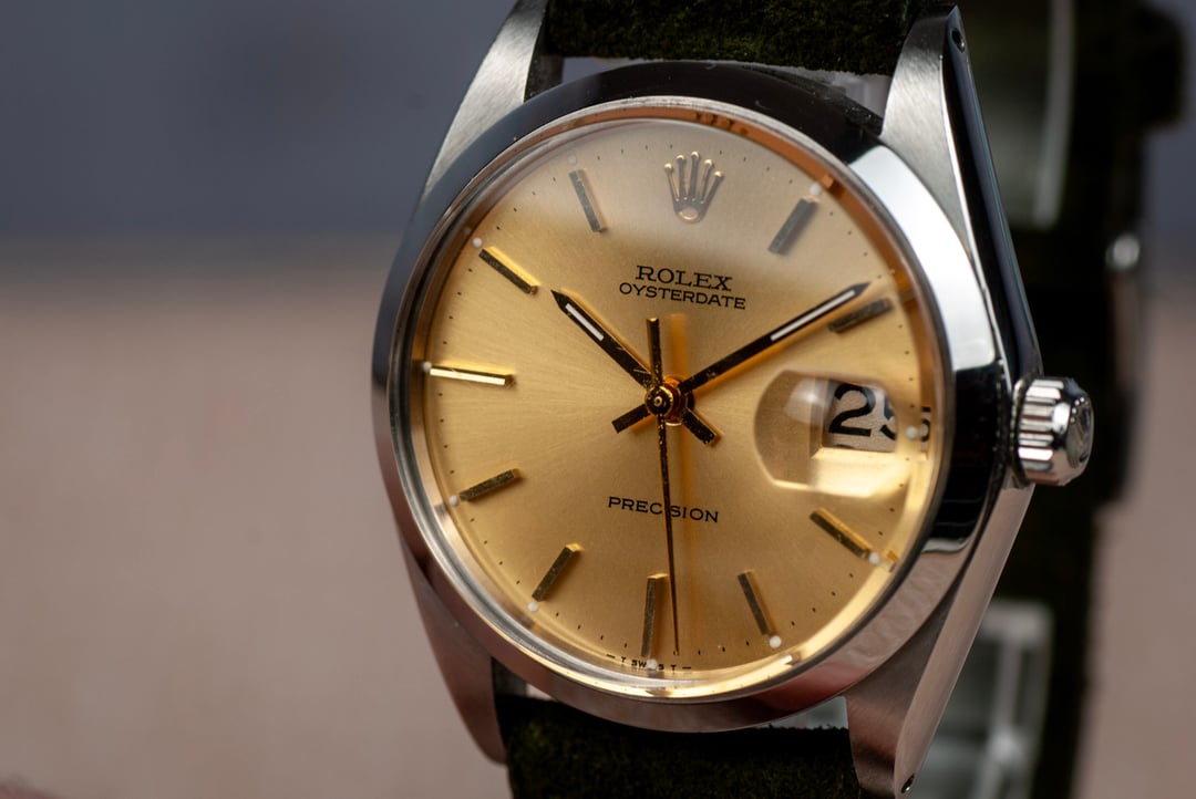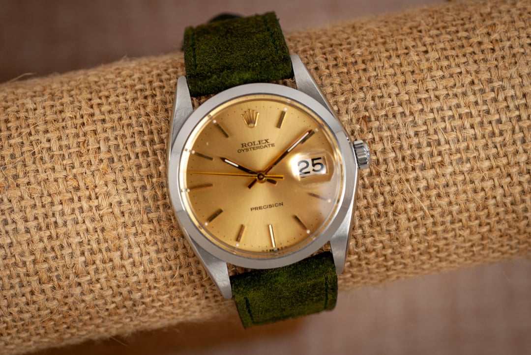 For sale is a 1971 Rolex Oysterdate Precision, reference 6694. Straightforward vintage Rolex, offered here as a watch-only sale and priced accordingly. This is the classic 34mm Oyster case with a clean, legible champagne dial and manual-wind movement. The watch wears easily and keeps the proportions that made these early Oysterdate models so versatile. Inside is the Rolex Caliber 1225, a hand-wound movement that’s simple, reliable, and still very serviceable. No complications beyond the date, no excess. It’s just a solid, honest vintage Rolex. The watch is fitted with an aftermarket strap and does not include box or papers, which is reflected in the price. This is a good entry point for someone who wants vintage Rolex without paying collector premiums. [Album](https://imgur.com/a/5NOeSat) **|** [Timestamp](https://imgur.com/a/6694-timestamp-ZIA8oMK) **Condition**: The watch is in good vintage condition. There is a bit of minor wear. There are no dents or dings and the lugs remain sharp. This isn’t an overpolished example. It is running well according to the timegraph and does not require servicing at this time. **Contents**: This will come with the watch head and aftermarket strap. **Shipping**: I ship FedEx fully insured to CONUS and will extend my discounted rate. **Price**: $1999 + shipping **Payment**: Wire or Zelle preferred. Other forms of payment can be discussed with serious buyers. I strive for transparency in all of my dealings. I want to provide a meaningful, comfortable experience for you when adding to your collection. Please reach out for additional photos or questions.