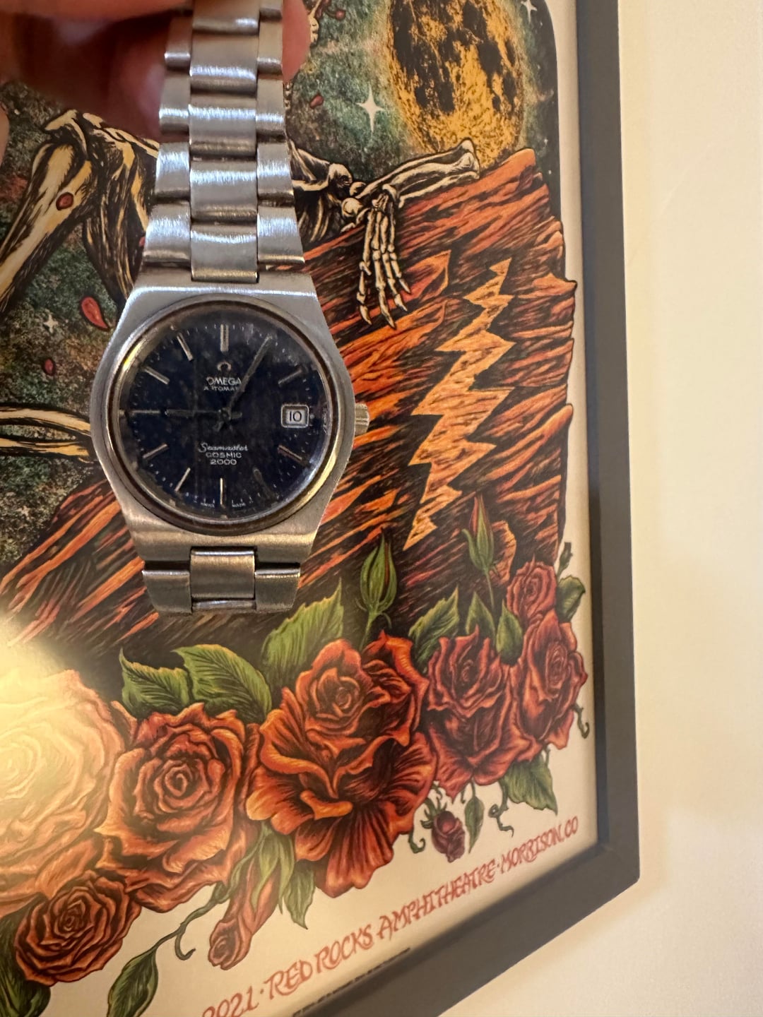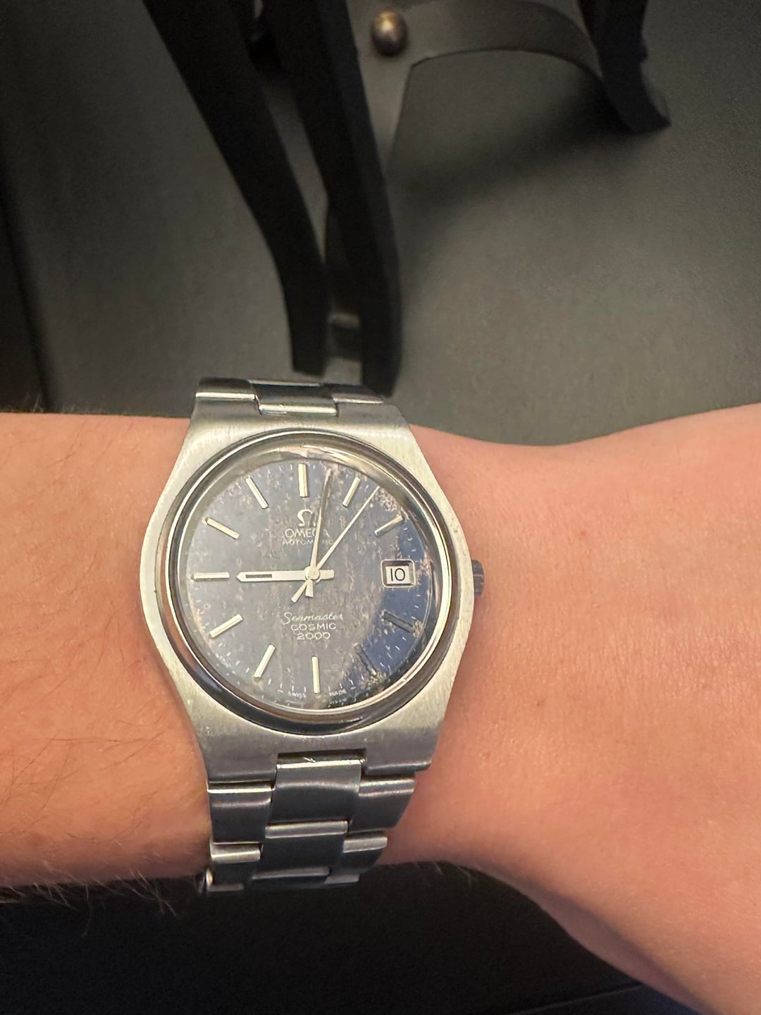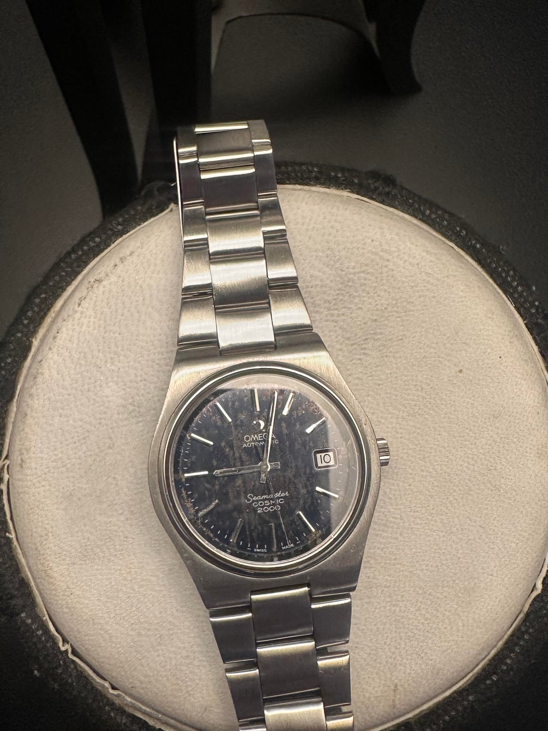 Up for sale or trade today is an Omega Seamaster Cosmic. Ref 166.135. This particular unit is unlike any one I’ve ever seen. Always been a passive admirer of these references because of their sleek design and rare (albeit polarizing at times) 1012 automatic movement. This particular unit really caught my eye because of the awesome patina on the dial giving it that ultra cool tropical look. Watch hails from the mid 70s. All parts are the original and it has recently been cleaned and serviced (runs really well). Comes with its original box but no papers. Bracelet is full size and should fit up to 9 inch wrist. Asking for $2250 but would also consider trade offers!