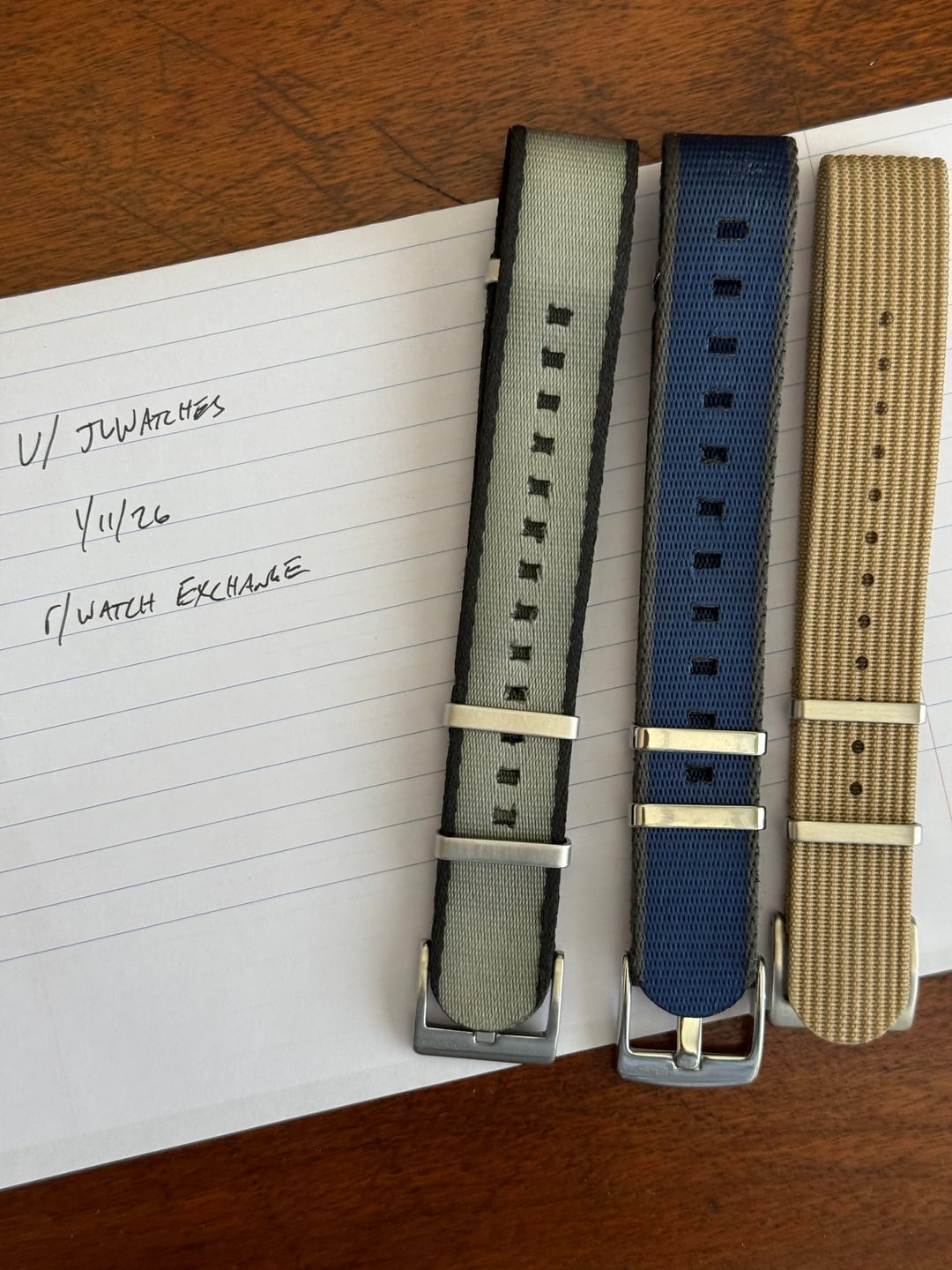 Hey WatchEx, I’m working on some cleaning out of things I don’t need or use! Today I have a few for your consideration. - First, I have two Omega SMP300 bracelet spare links. Unfortunately I ordered too many, so let my loss be your gain at a nice discount. $95 for the pair shipped CONUS - I have a spare half link as well if needed - $100 for two links and the half. - Second, Breitling rubber strap in red with matching Breitling tang buckle. This was part of a trade a while back and I just don’t wear it due to the bracelet never coming off! Size is 22mm tapering down go 20 at the buckle. Someone put this bad boy to use please! $175 shipped CONUS (I think this is pretty fairly below market rate for an easy sale) - Third, I have three NATOs that have only been worn a couple times. The gray/black, and blue/gray are both BluShark straps - one of my favorites out there. The tan is from Helm and is single pass. Take all three for $30 shipped CONUS. Feel free to shoot me offers on any and of course happy to make deals on multiple or the whole lot :) Cheers and thanks for reading!