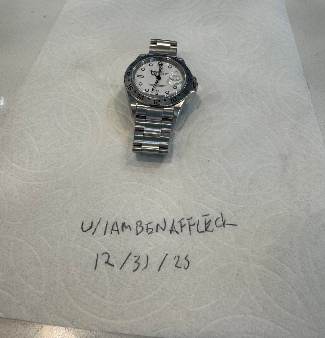 [pics](https://imgur.com/a/q48HLi3) [timestamp](https://imgur.com/W1owKGA) For sale is my 2009 16570 Polar, with the desirable 3186 movement, engraved rehaut, and crisp, factory case lines. Case: Great condition no-holes case with thick and even lugs. The bezel retains its factory finish, the lugs are sharp and have retained their original chamfers. Overall light signs of wear, no notable gashes, dents, etc. M-serial. Dial: Excellent polar Superluminova dial with matching hands. Bracelet: The SEL Oyster bracelet is in great condition and has minimal sag as pictured. The clasp is stamped with a PJ code. Fits my 7.25" wrist currently, comes with one spare link, so should fit up to a \~ 7.5" wrist. Accessories: Inner/outer boxes, booklet, hang tag, cleaning cloth, and original warranty card. Notes: This Explorer is in need of a service, and is priced to reflect that (market price minus $1k to cover a factory service for the buyer). It runs at about \~ +20s/day, which may relate to magnetization, but, I don't have the time to sort that out. All functions work properly (e.g. crown has lots of threading, the GMT and hacking functions work as expected, etc.). * Offered at: $9,150 shipped * Payment: bank wire * Shipping: insured overnight. I will accommodate special requests (e.g. ship via a specific carrier). International shipping available for an additional fee. Thanks for looking, and feel free to ping me with any questions. I don't have much feedback on this sub, but I have very established Watchuseek, Omega Forums, and eBay profiles I can independently verify on request, just let me know.