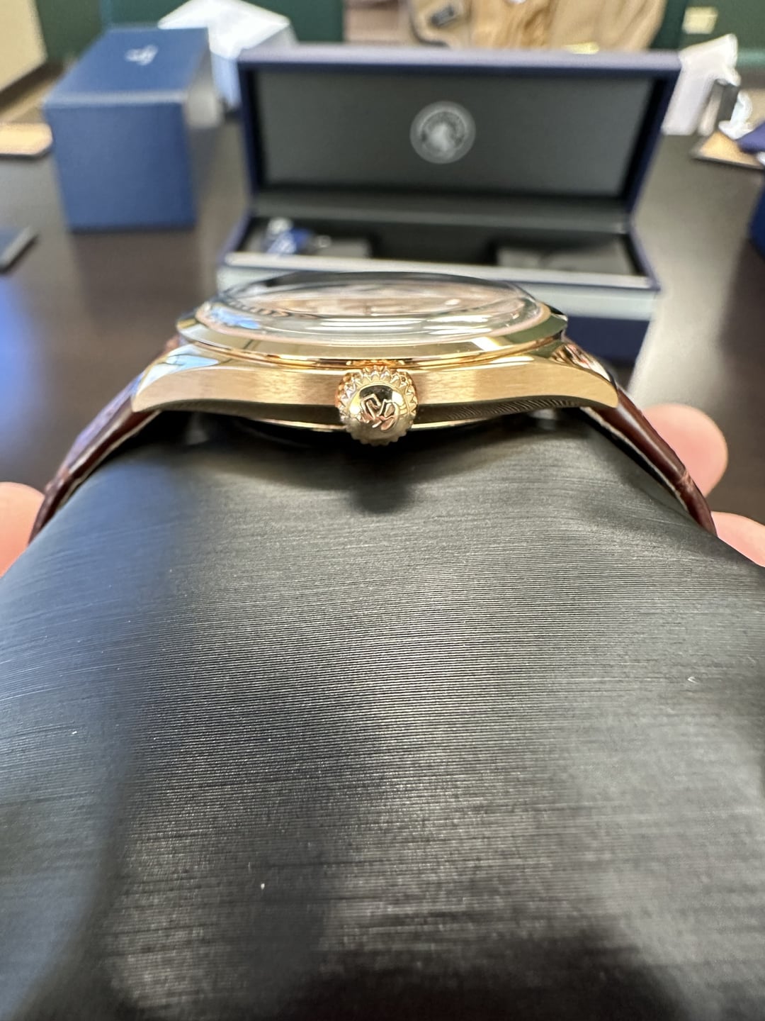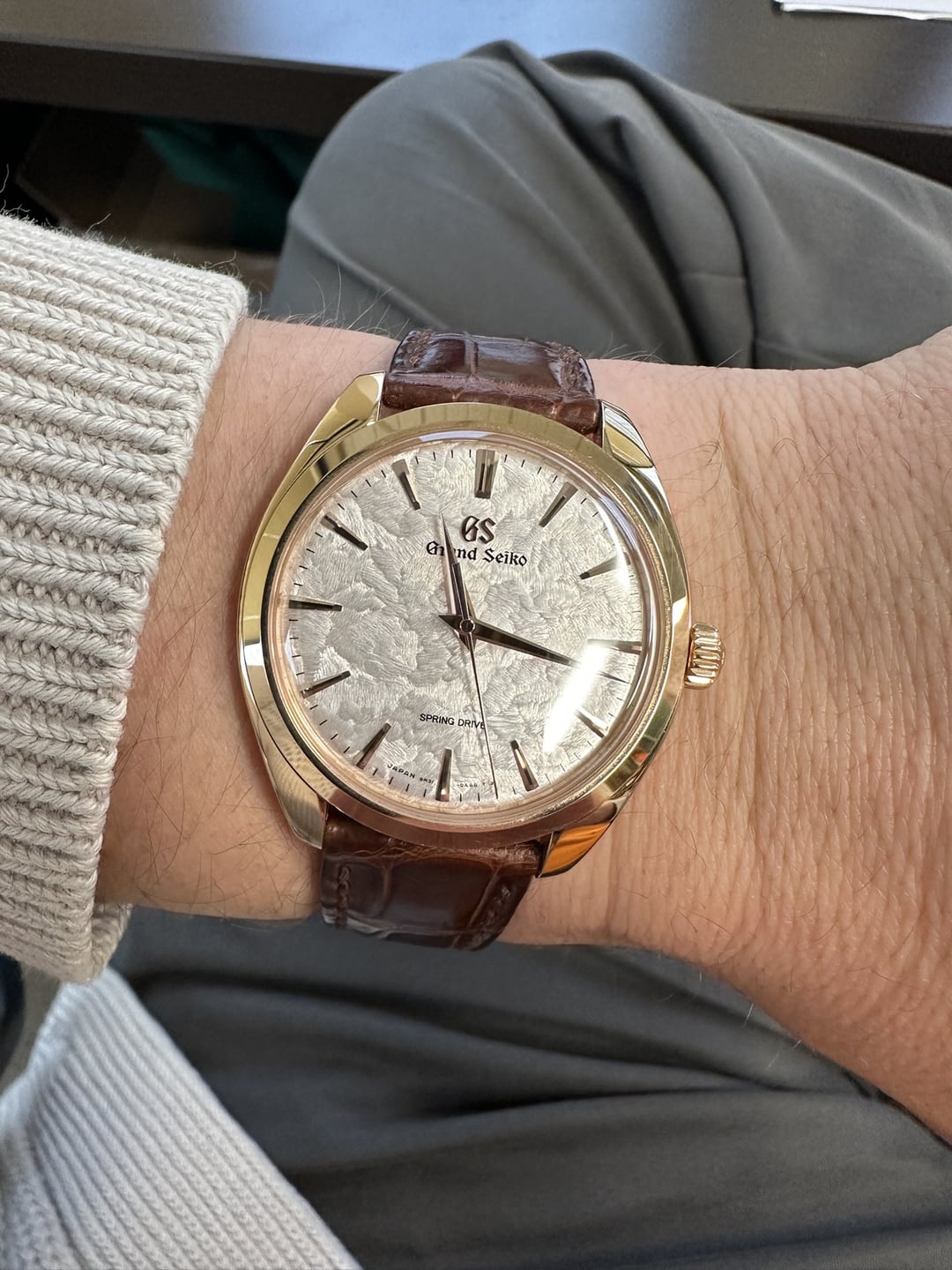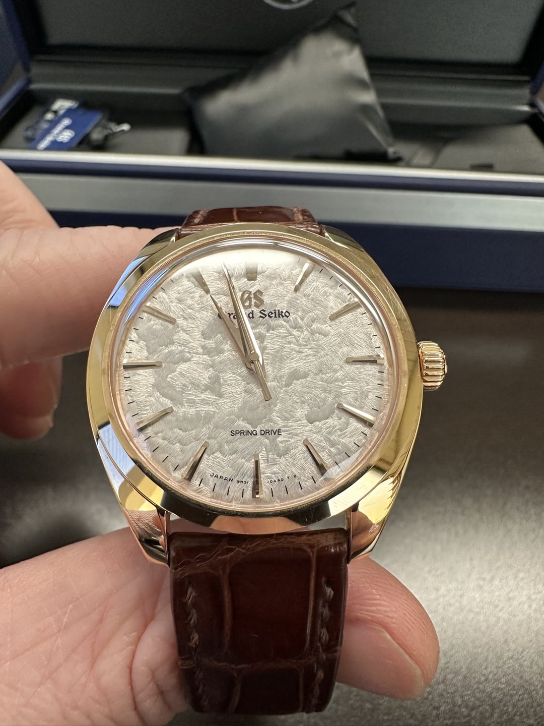 Today, I'm putting up for sale my Grand Seiko Hana Ikada SBGY026. The moment Watches and Wonders announced this in 2023, I called my AD and was able to purchase before they even left Switzerland. I'm selling it for two reasons. One, I am looking to purchase a different piece and this would help with the funds for that. Two, When I bought this, I didn't particularly tie it to any achievementor any milestone, just bought it cause it was one of the most beautiful watches I've seen, but I've learned that my connection to watches weakens substantially if I didn't buy it for an occasion/celebration. I imagine anyone who is looking to purchase this is already quite familiar with the watch, but here are some of the spec's if not. Combination of the sought after Shunbun dial color and texture, and the Omiwatari case shape. The iconic Spring Drive movement from Grand Seiko. Hand wound which keeps the case a thin 10.2mm Rose Gold 38.5mm what I personally perceive to be a perfect size for a dress watch for someone with larger wrists like myself Condition is great for an gently used watch. There is some light swirling on the case, and then a scuff on the buckle. All of the cosmetic marks are very surface level. Ive tried to depict that in the photos. Have all boxes and papers and even the tags that were attached to the watch at the time of purchase. I'm more than willing to Facetime to show close ups or discuss the transaction. Im asking for $30,000 to me via Wire or Zelle willing to ship to the 48 continental States. Im in the Chicagoland area, so if you're around the area, we can meet at a bank and transact the business in person should you like. Thanks for reading, and hope to chat!