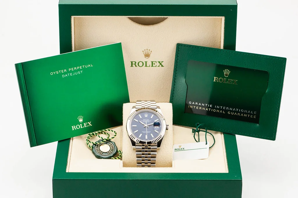Up for sale is an unworn condition Rolex Datejust 41 with Blue Stick Dial with Fluted Dial on Jubilee Bracelet, reference # 126334. It comes complete with all boxes, papers, booklets, hang tags, and Rolex Warranty Card dated July 2024.