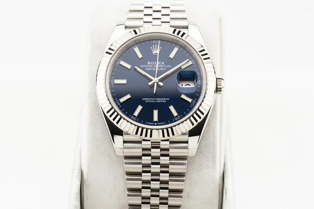 | Rolex 41mm Datejust Steel White Gold Blue Dial Men's Watch 126334 swissice (5394) |