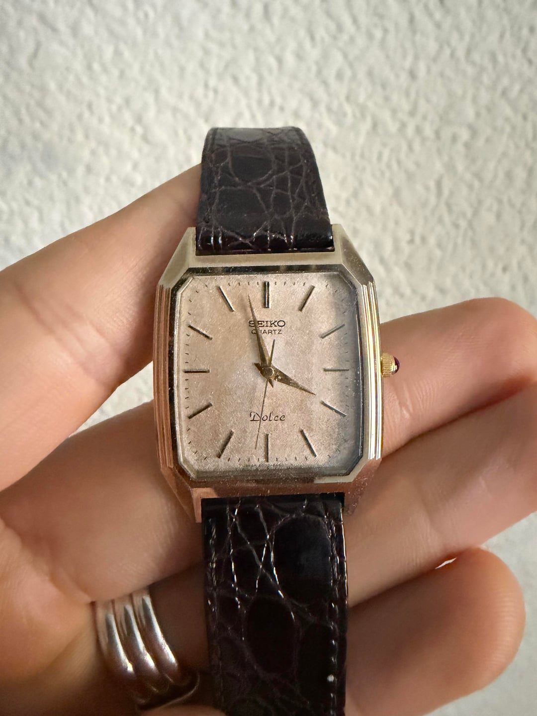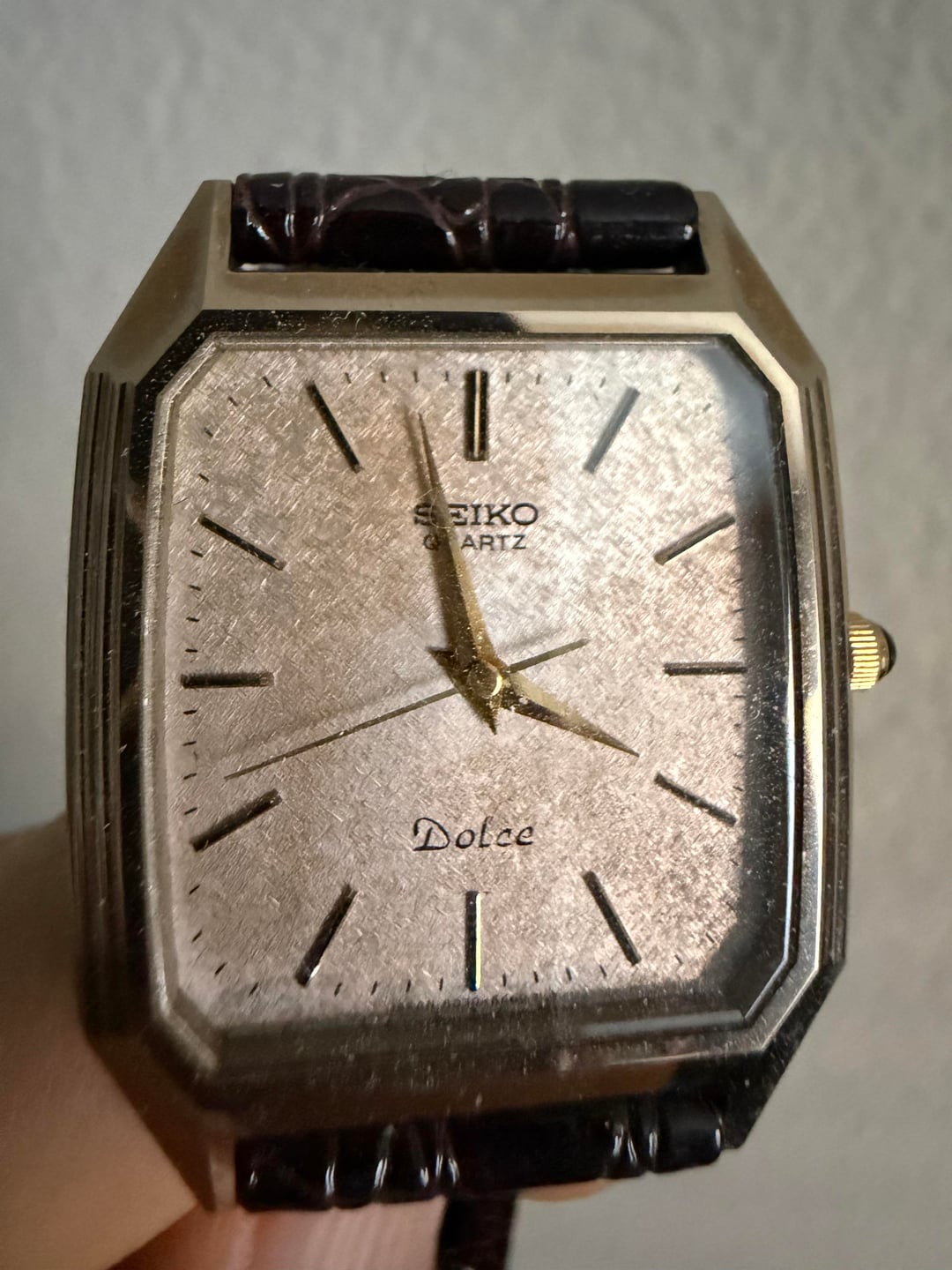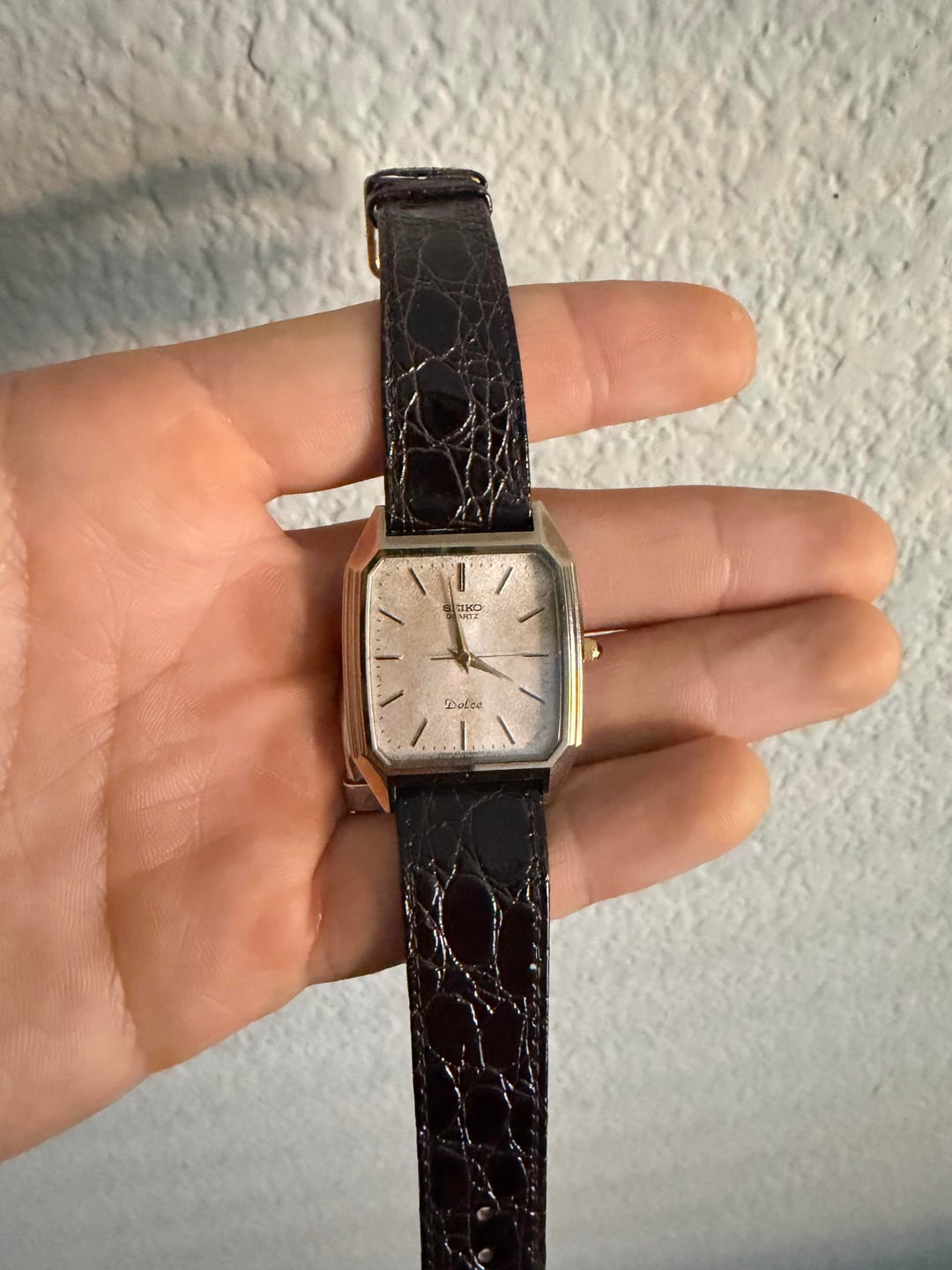 Hey Watchexchange! Selling my vintage Seiko Dolce Tank from the 80's. Watch is in fantastic running condition and keeping good time with its quartz movement. Dial is a beautiful texture, almost snowflake-like. Size is around 28mm x 36mm. Price is **$199 shipped CONUS via PayPal F&F or Zelle.** Not taking any trades at this time, cash only. If you have any questions or offers, PM me! Located in the Bay Area and willing to do F2F transactions if you’re local.