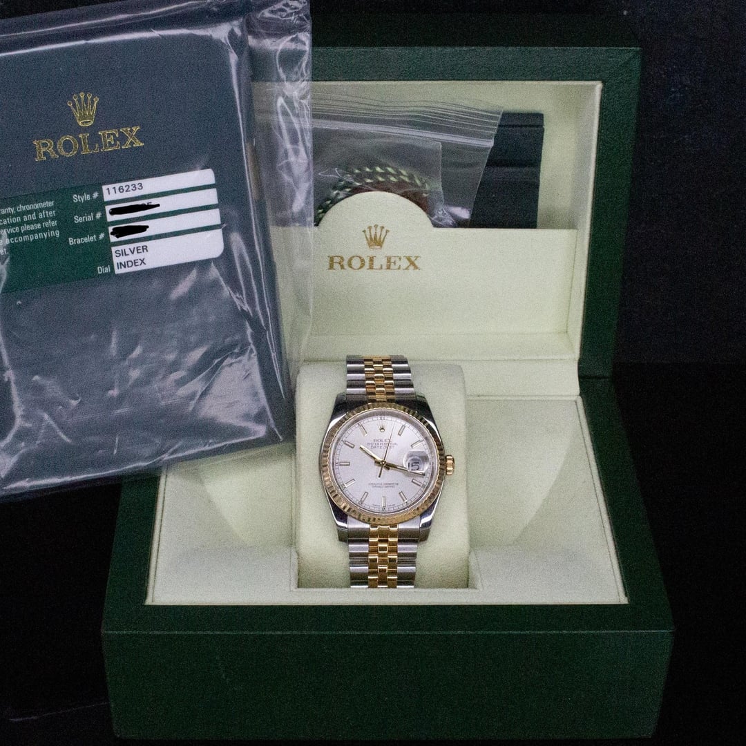 italiano![[WTS/WTT] Rolex Datejust 36mm Two Tone Silver Dial 116233 Box and Papers *Recently Serviced (1 Year Warranty)* 1](https://cdn-cf.watchpatrol.net/600x600/img/full/08ecc16d085d8ce1d4afb332405635a4d9b50750.jpg)
