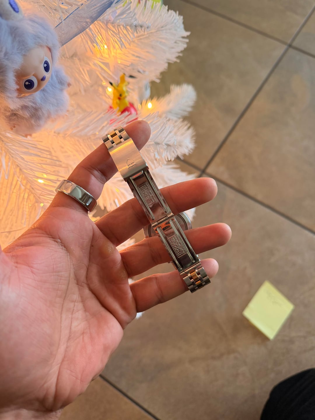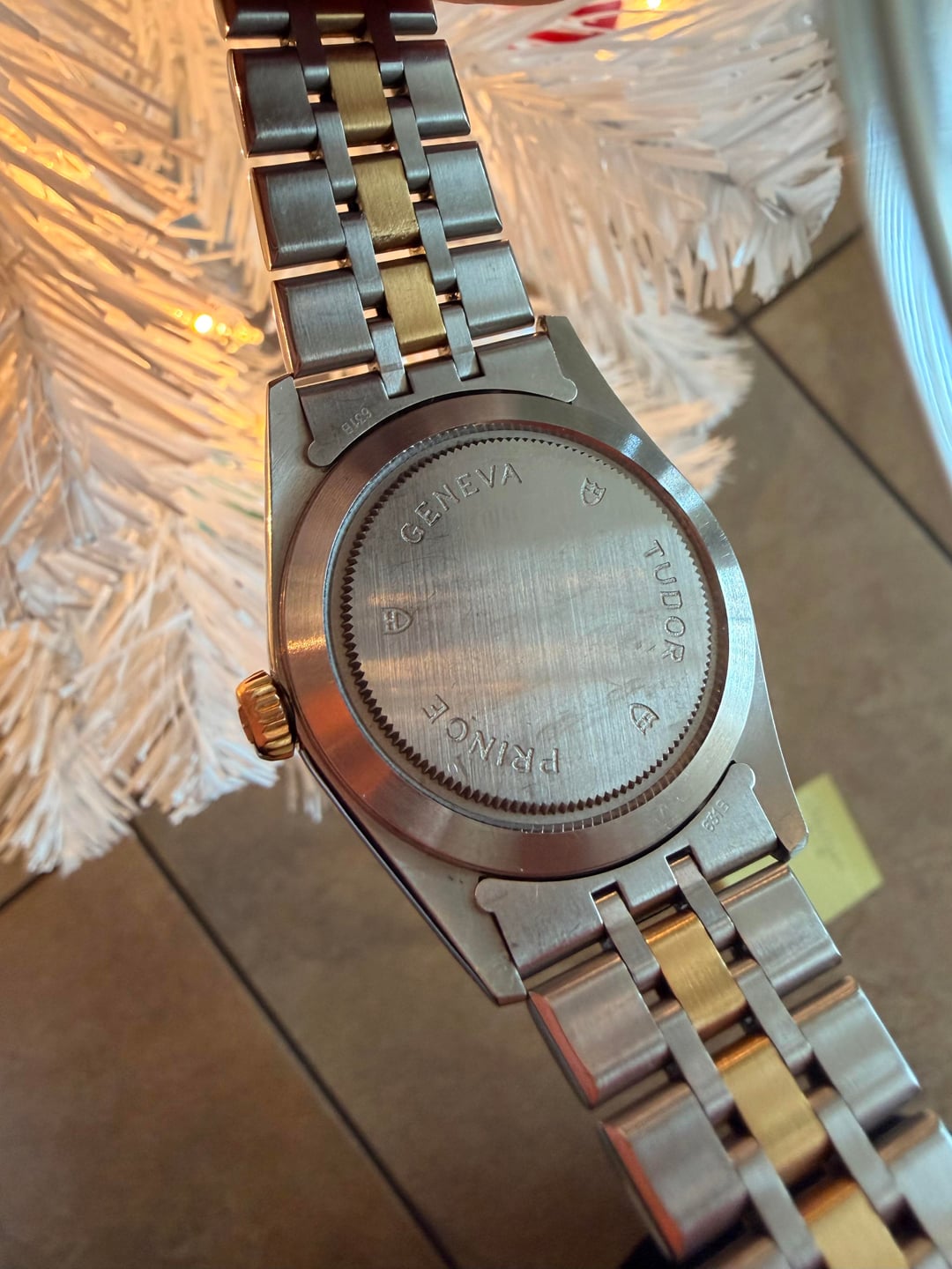 For sale is this gorgeous Tudor Prince Two Tone Day-Date on OEM bracelet. The watch features a solid 18K gold bezel and a two tone bracelet that is in excellent condition. The case itself is in 9/10 condition with no dings, knicks, or fleabites. The crystal is in flawless condition. The original gold bezel looks flawless and the linen dial is similarly mint. You'll be hard pressed to find a cleaner example! The bracelet will fit up to an 8" wrist so this is a rare fully linked example of this coveted piece. I am the fortunate owner of a Rolex Day-Date and I can say in earnest that you're getting the same build quality for a fraction of the price with this model. It's such an incredible value proposition and definitely a hard one to pass up at this price point. I'm asking a reduced **~~$2,150~~** **-> $1,999 or best reasonable offer shipped** for this piece. Which, is a steal for this quality day-date with a white linen dial. **Link to Delugs Strap Article:** [https://delugs.com/blogs/strap-guide/strap-guide-tudor-prince-date-day?srsltid=AfmBOopBPy7R\_F2BiltBbDihj0YUSbRVaiNzKH31EGokHNkB8D5xSrE7](https://delugs.com/blogs/strap-guide/strap-guide-tudor-prince-date-day?srsltid=AfmBOopBPy7R_F2BiltBbDihj0YUSbRVaiNzKH31EGokHNkB8D5xSrE7) This watch is a strap monster and is a great one watch collection for any enthusiast! Please let me know if you have any questions. Trades down may be considered though TV will be a bit higher. Thanks for looking!