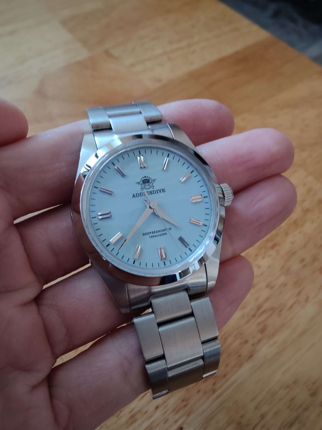 \[WTS\] Addiesdive AD2030 - $50 Shipped CONUS Watch is in mint condition with no visible blemishes. Comes on OEM bracelet. Timestamp on last slide. * Full kit with box * Sweeping quartz VH31 movement * Light blue sand pattern dial * Explorer-style case * WR 100m with screw down crown * Case diameter 36mm * Case thickness 12mm * Lug to lug 46mm * Lug width 19mm * 316L stainless steel case, bracelet, and milled clasp with 5 micro-adjust holes Payment accepted via PayPal or Zelle. CONUS shipping included. Any questions please feel free to PM me!