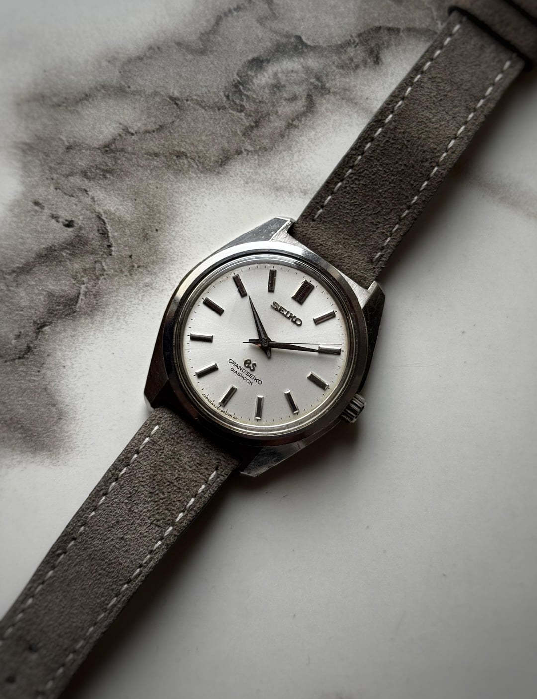 [WTS] Grand Seiko 4420-9000 Grammar Of Design 44GS, Handmade Suede Strap only for 1599$ Shipped 🚢 Up for sale is a grand seiko reference 4420-9000 featuring a stainless steel case with a case size of 38mm. Condition of the case is good no major dents or dings just a few hairline scratches overall. A small hairline crack on the bezel around 11o clock. Dial is overall in good condition with little signs of aging throughout. Original GS signed crown and crystal, crystal has a few hairline scratches that can be buffed out. Comes on a brand new handmade suede leather strap paired with a standard steel buckle. Manual winding movement calibre 4420 working perfectly fine with no malfunctions and keeping accurate time as it should. Timegrapher results can be shared. Watch only! Asking 1599$ shipped via UPS(US Tariff will be covered) Will be shipped in 2-3 days Payment through Wise/Paypal F&F/Crypto.