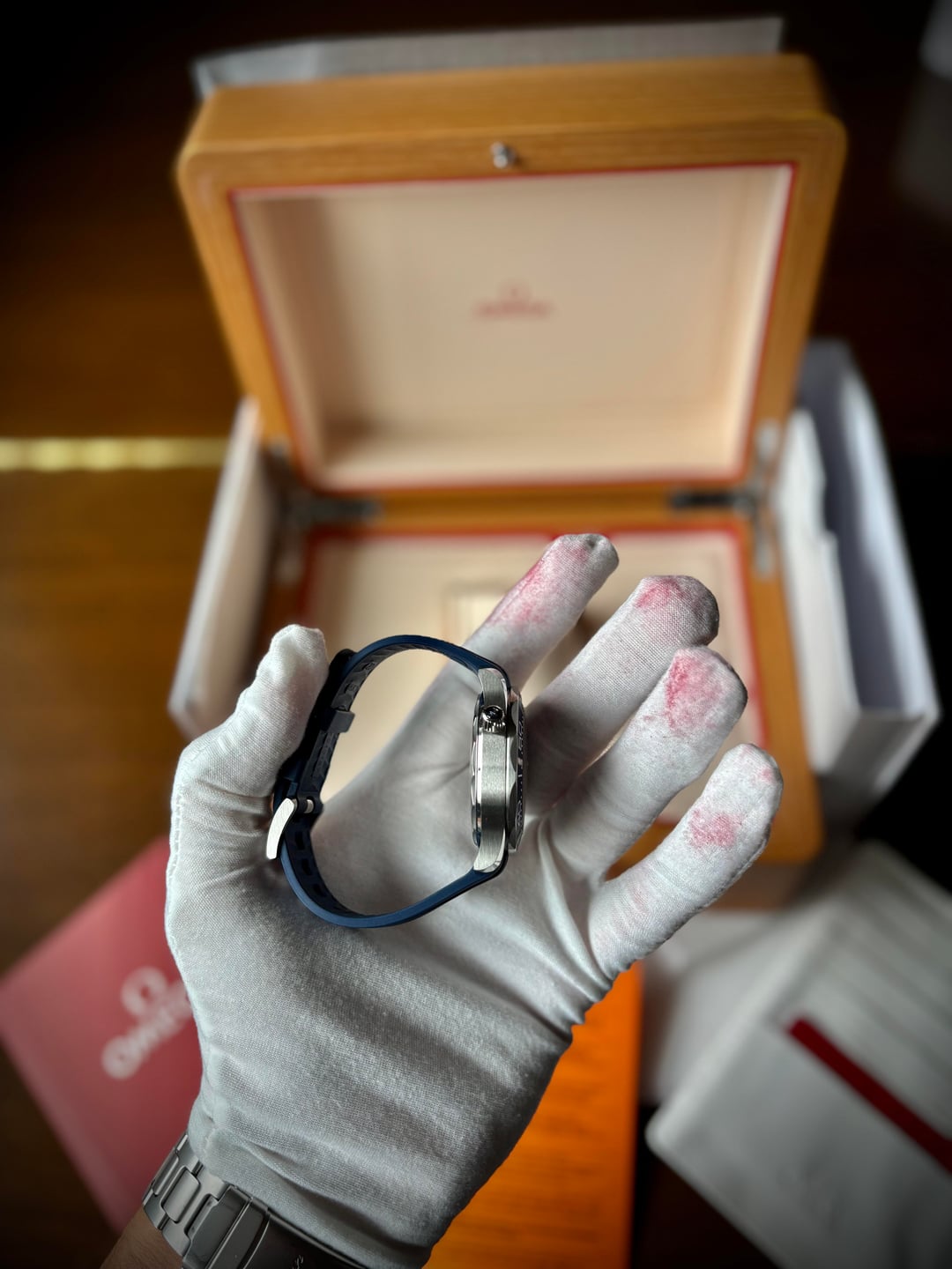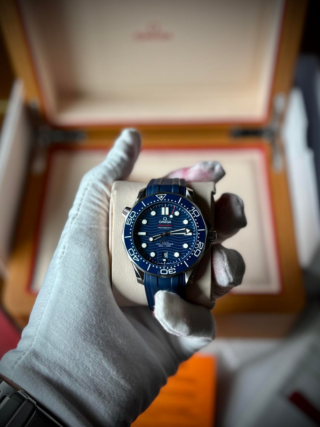 For sale is an Omega Seamaster Diver 300M with blue ceramic wave dial and blue ceramic bezel. Powered by Omega’s Cal. 8800 Co-Axial Master Chronometer Watch is in excellent condition with minimal signs of wear. Original blue Omega rubber strap in excellent shape. Included: • Omega wooden presentation box • Watch on original rubber strap (No warranty card / papers) Happy to provide additional photos. Not interested in trades. • Price: $3750 (net to me) • Shipping: Fully insured, CONUS preferred