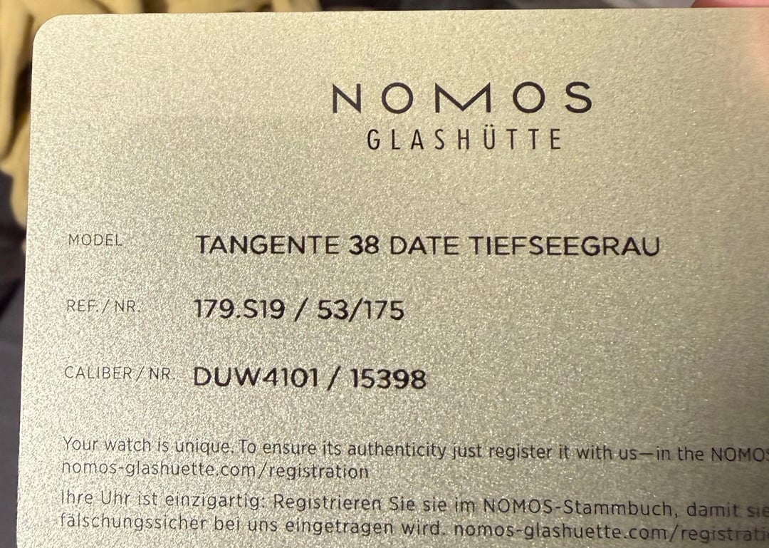 ![Thumbnail [WTS] Nomos Tangente 38 Date Tiefseegrau /175 - With Warranty Card and Original Box and 2 Extra Straps 10](https://cdn-cf.watchpatrol.net/120x120/img/full/8dffe2de9fad4b49a24ef6e28693df7de7066bb7.jpg)
