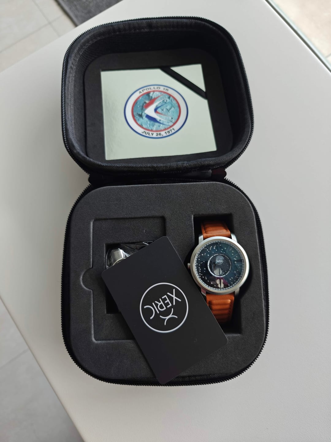 Hi community I love Xeric watches, especially the Apollo 15 because it reminds me of the Jacob Astronomia but I don't have 1 million dollars :-D I have 3 of them, but I decided to part with this one that I never used. Like new, unworn. Price $250 + shipping. It's the Apollo 15 Moonphase (quartz) in blue. They are all sold out now , but you can see the specs here. [https://www.xeric.com/collections/nasa-apollo-15-american-moonphase-watches](https://www.xeric.com/collections/nasa-apollo-15-american-moonphase-watches) Specs: Movement: FTS AmeriQuartz Caliber 7129 Moonphase Case Material: Stainless Steel Case Size: 40 mm Case Thickness: 13.6 mm Lug to Lug: 47 mm Crystal: Anti-Reflective Sapphire Band Material: Italian Leather Band Width: 20 mm Water Resistance: 5 ATM Watch Weight (g): 76 g Limited Edition: 1,971 More pictures and timestamp: [https://photos.google.com/share/AF1QipNS4o1lI8GuT-aEOnnV1IAtwv9toUYtcIjFO-59XgFtMW6bWiU3cVpxLdHJNc\_Frw?key=cllMaEVkMW1ZdWQzM0MwUjhkakd2V0ZBc002Vkx3](https://photos.google.com/share/AF1QipNS4o1lI8GuT-aEOnnV1IAtwv9toUYtcIjFO-59XgFtMW6bWiU3cVpxLdHJNc_Frw?key=cllMaEVkMW1ZdWQzM0MwUjhkakd2V0ZBc002Vkx3)
