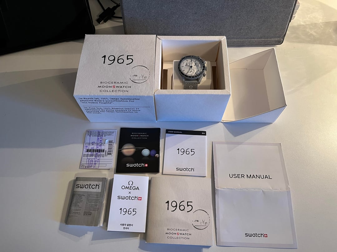 Hi I am selling my Omega Moonswatch 1965 I bought in May 2025 in Korea. It comes with full package, Watch, papers including Korean instructions in original box and sleeve. See photos for more conditions, it’s mint condition (9/10) as I wore it only about ten times since I bought it last year. Strap is almost new as I replaced it with different strap as soon as I bought it. Price: $320 firm including shipping to CONUS only, insured. Accepting Venmo / PayPal F&F / PayPal G&S with 3% fee (only with reputable buyer). Timestamp and photos are uploaded in Original post. PM me if you are interested. Thanks.
