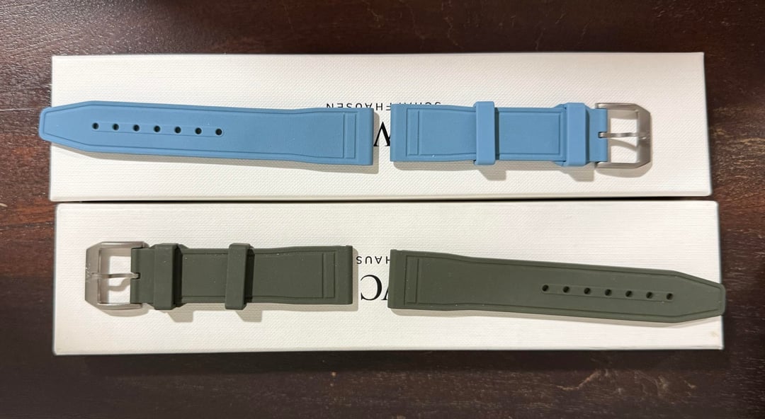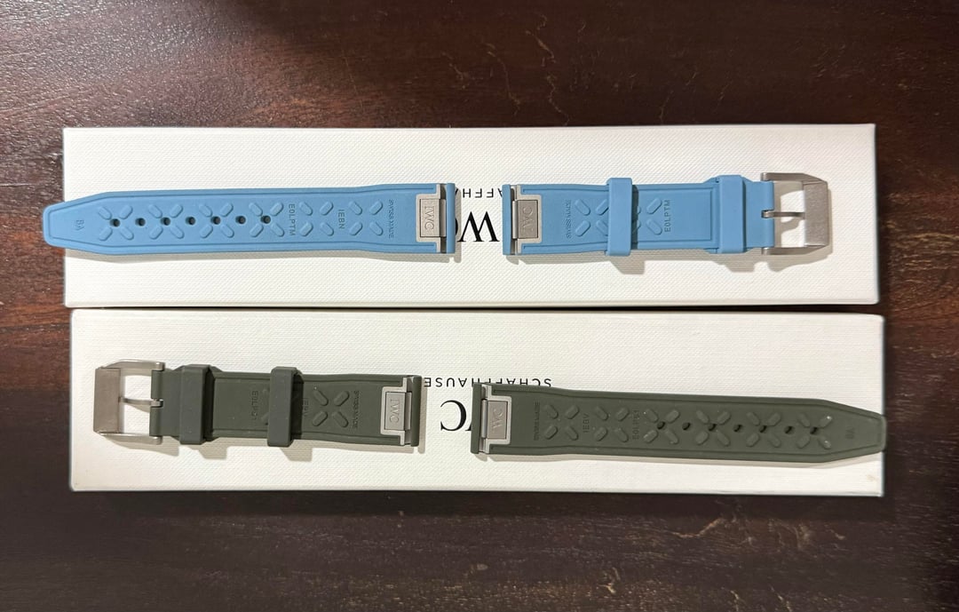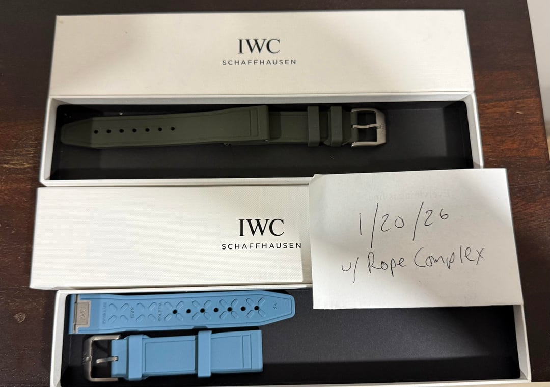 For sale are 2 straps I received as extras with my 41mm Mojave Chrono. I tried wearing these a couple times with my watch but the style of the watch doesn’t really fit with any other color so I’m selling them here. I did purchase titanium buckles through IWC’s online boutique and they are included. The total for everything is just over $800 if you would buy it new so I’m selling them for $450 for the pair with free shipping. I accept Zelle and Venmo.