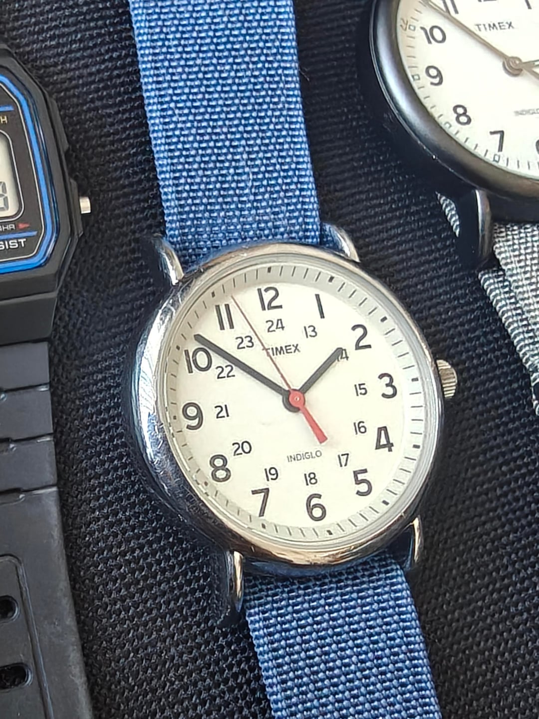 Selling a great bundle of everyday quartz watches. Perfect for a starter collection, beaters, travel, or casual daily wear. Bundle only, not splitting. Included: • Casio AQ230A – classic analog/digital retro style • Casio F-91W – iconic ultra-light daily beater • Casio AE1200 (“Casio Royale”) – world time, great travel watch • Timex Weekender 38mm – clean casual field style • Timex 40mm – PVD Black more rugged, easy everyday wear Condition: All watches are running and keep time with normal signs of light wear. Note: The Indiglo does not work on the Timex 40mm, but the watch functions normally otherwise. Extras: All three Casios were purchased within the last year and include original box and manuals. Both Timex watches have fresh batteries installed and are mounted on brand new, unworn NATO straps. Timex watches are watch only (no box/papers). Price: $99 shipped (CONUS) - Zelle, Venmo, or PayPal F&F DM with any questions