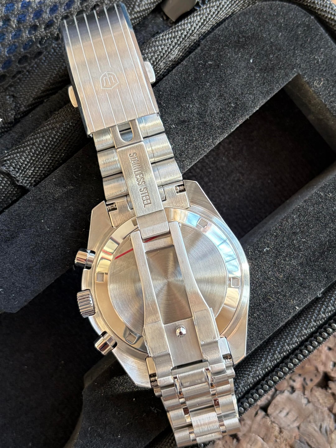Asking $79 for WatchDives, CONUS shipping included -- Octopus NOT included, was sold separately * Watch is in near new condition.  Adjusted bracelet and tried on. *   * Info from WatchDives site: * \- WatchDives WD1863: [https://watchdives.com/products/watchdives-39mm-vk63-chronograph-watch-wd1863-speedy?variant=46516628816090](https://watchdives.com/products/watchdives-39mm-vk63-chronograph-watch-wd1863-speedy?variant=46516628816090), uses the Seiko VK63 mecaquartz movement * Includes: * \--- WatchDives WD1863, with case, extra links, screwdriver, paperwork * \--- Does NOT include Octopus Explorer *   * I’m a private collector slimming my collection down and have 100+ transactions on WatchExchange – and I’m happy to talk to you on the phone or FaceTime once you are sure you’d like to proceed.  Thank you for reading my post, and thanks also to the Mod community on WatchExchange.