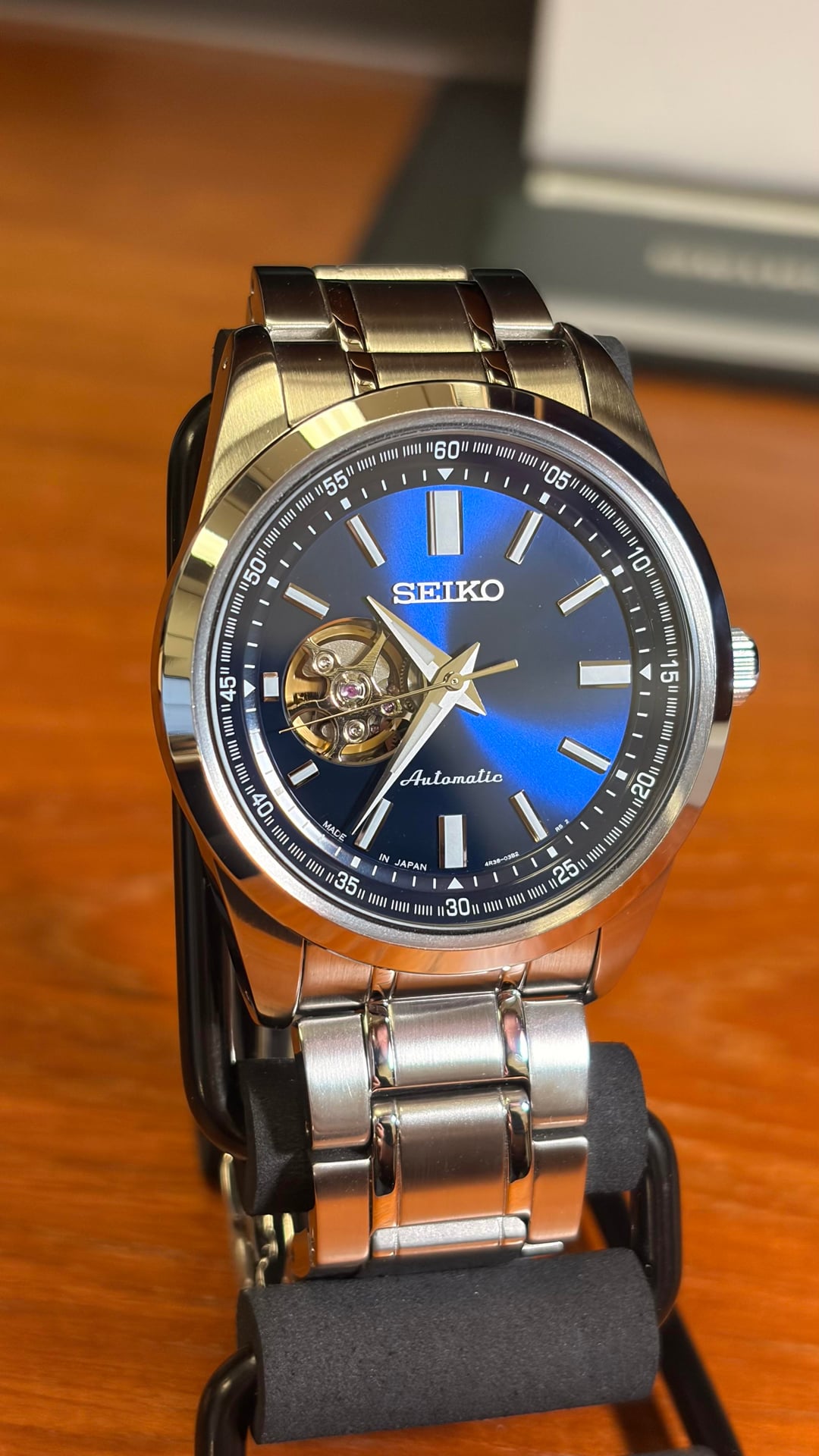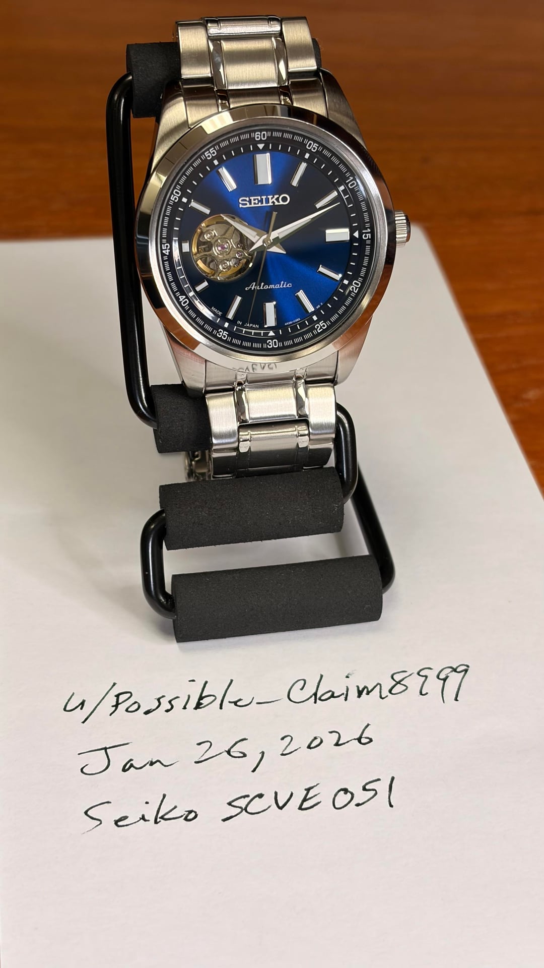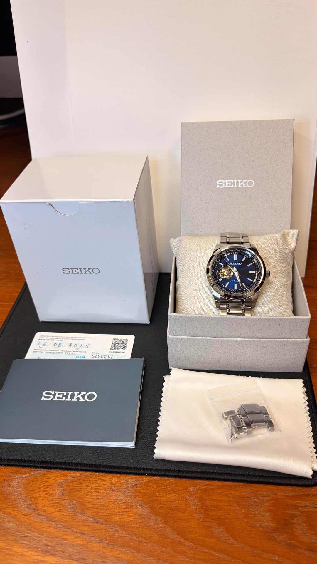 **The Watch** Up for sale is the stunning **Seiko Selection SCVE051**, a **Japanese Domestic Market (JDM)** exclusive. This piece features a captivating "Open Heart" window at 9 o'clock and a deep sunray blue dial that shifts beautifully in the light. Video (Wrist Roll, and Open Heart Movement): [https://imgur.com/a/8Sc8vrB](https://imgur.com/a/8Sc8vrB) **Condition & History** * **Condition:** Mint. The case and Hardlex crystal are free of any notable marks. Worn sparingly in a large rotation. * **History:** Purchased in Japan; **warranty card is dated June 8, 2025**, meaning it is covered through **June 2028**. **Specs** * **Movement:** Reliable Seiko 4R38 Automatic (Hacking/Hand-winding). * **Case:** 42mm Stainless Steel (11.6mm thin). * **Water Resistance:** 100m (10 BAR). * **Bracelet:** Stainless steel with all original links included. **The Kit** * Original JDM Seiko Box & Outer Sleeve. * Instruction Manual. * **Validated 3-Year International Warranty Card** (Activated June 2025). * All spare bracelet links. **Pricing & Shipping** * **Price:** **$245** * **Shipping:** **Free USPS Priority Shipping** (Insured) within the USA. * **Location:** Shipping from **Hawaii**. * **Payment:** PayPal F&F (or G&S +3% for established members). **Why buy this one?** Skip the 3-week wait and $40+ import duties from Japan. This is a "Full Kit" in mint condition, already state-side and ready for your wrist.