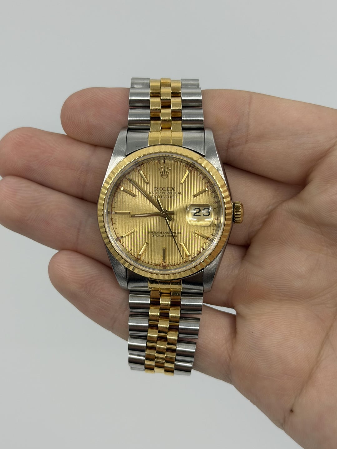 Factory Tapestry Dial. Asking $5800 obo. Watch is missing 1 link. Comes with no box or papers. New to Reddit as far as watch selling so more than happy to FaceTime or anything if needed. Cheers!