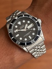 Seiko SKX031 – Ref. 7S26-0040 Price: $350 CONUS only. Shipping via USPS Priority (or similar) with tracking and insurance. Shipping included. No international shipping. Classic midsize SKX that wears incredibly well. Purchased by me on Chrono24 in February 2021 and rarely worn since. 39mm case, 22mm lug width, ~12mm thickness, 100m water resistance (screw-down crown), Seiko 7S26 automatic movement (43hr power reserve) - Upgraded ceramic bezel insert - Bezel currently rotates bi-directionally and without clicks due to a missing or worn bezel click ball and spring - Water resistance is not guaranteed and the watch may benefit from a service and fresh gaskets - Small scratch on the Hardlex crystal - Overall very attractive, honest condition Included: - Jubilee bracelet - President-style bracelet - Green rubber strap - Multiple high-quality NATO straps Great foundation for a mod project or an easy wear as-is. Happy to provide more photos or answer questions.