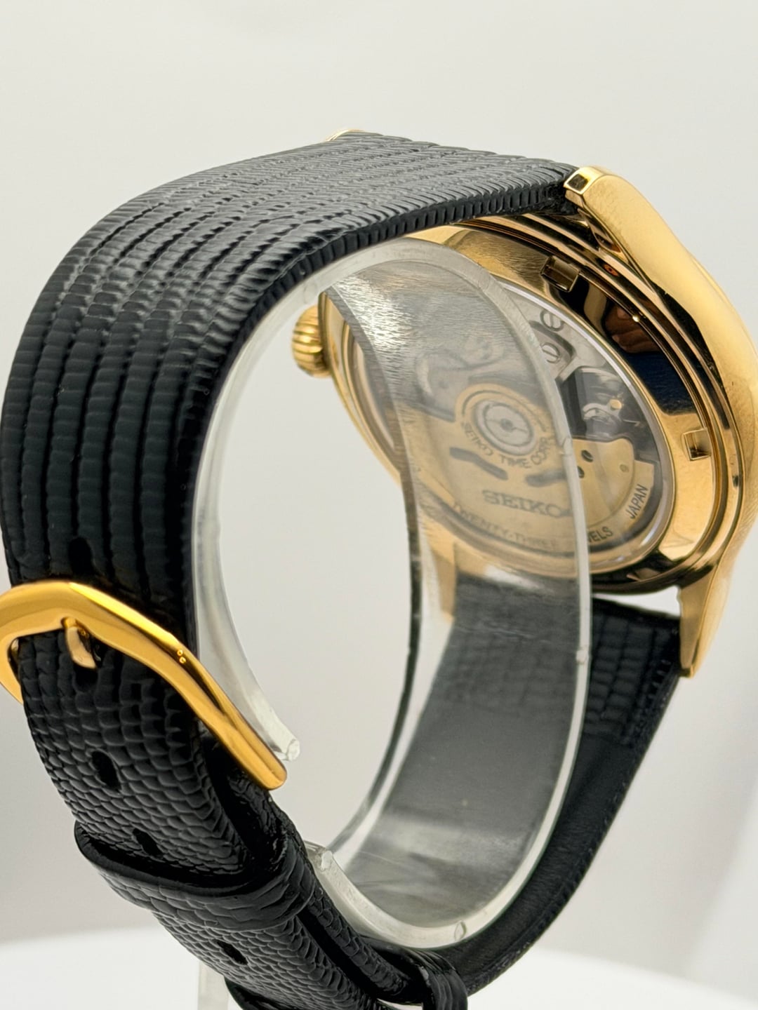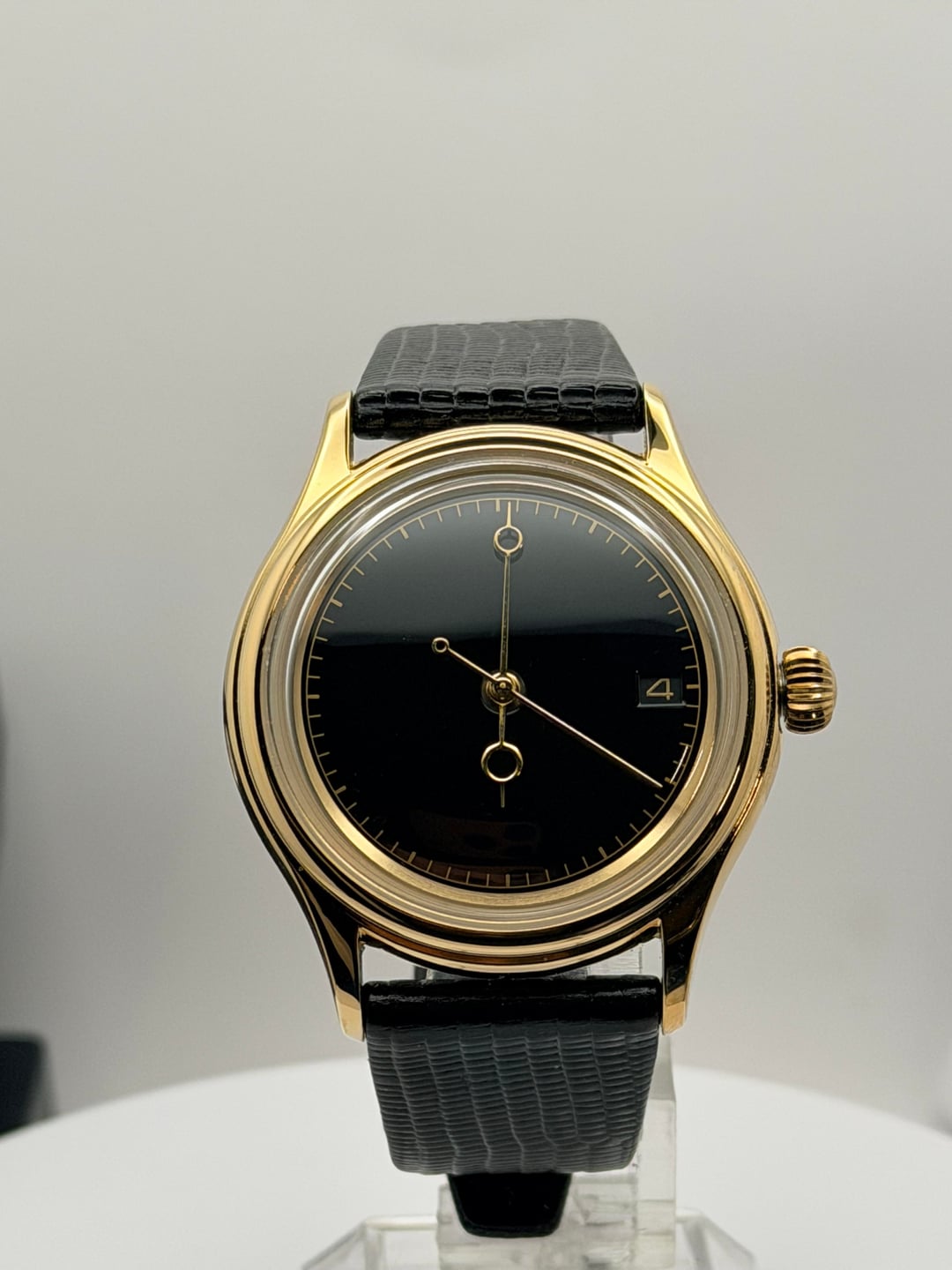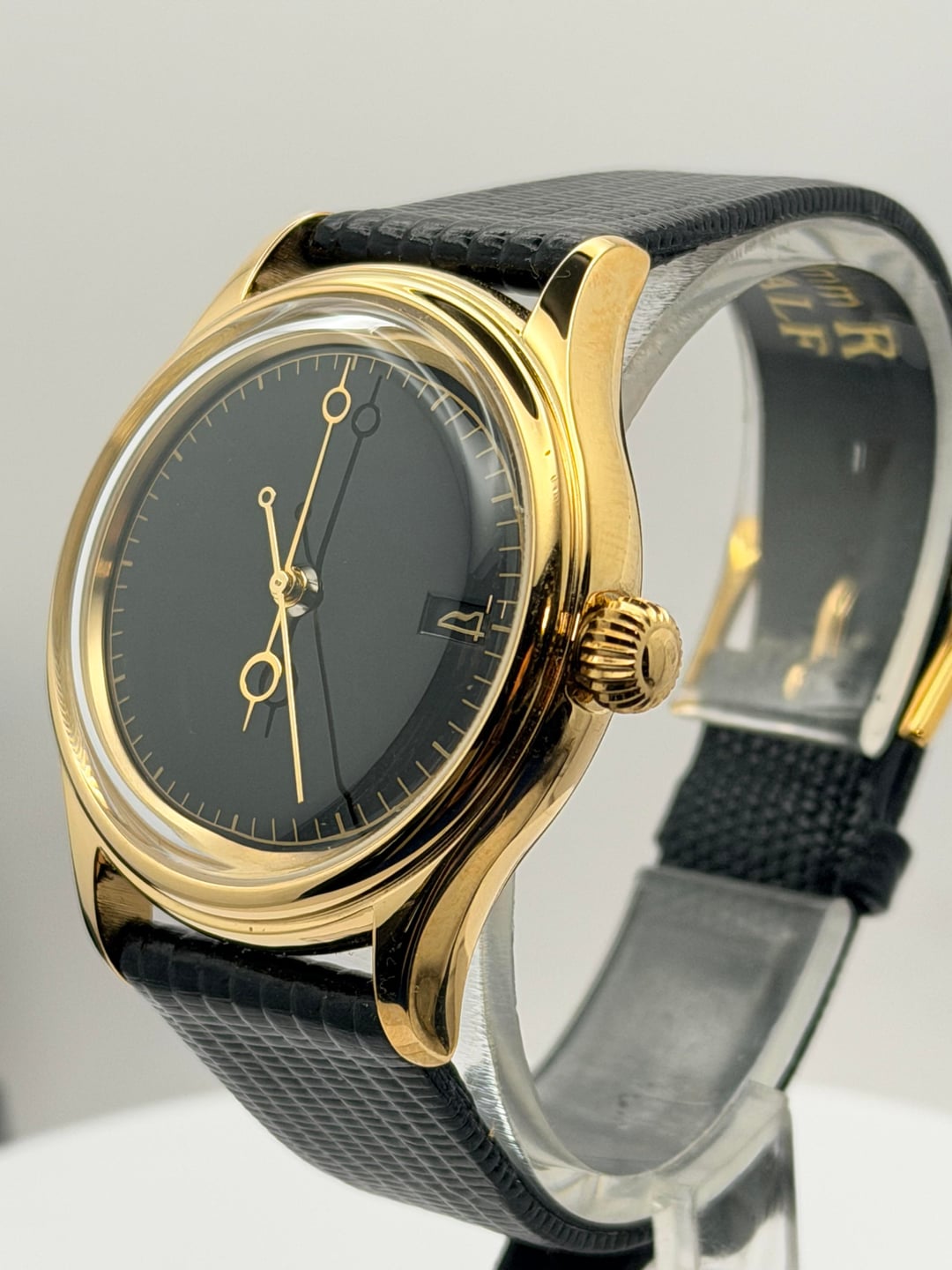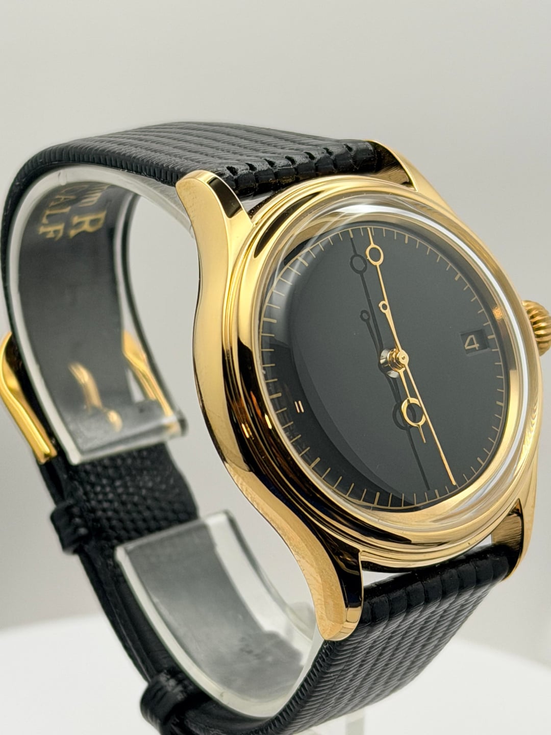 $250 plus shipping in the US This custom Seiko mod is inspired by iconic vintage Omega and Polerouter aesthetics, blending simplicity with classic sophistication. Featuring a sleek black dial, elegant gold-tone case, and textured black strap, this watch delivers understated luxury with a timeless presence. Designed for those who appreciate clean lines and heritage style, it’s a versatile piece that looks just as good dressed up or worn casually. Reliable Seiko movement meets custom craftsmanship for a unique watch you won’t find in stores. Custom Seiko mod Vintage Omega / Polerouter inspired design Black minimalist dial Gold-tone case 38mm Sapphire Glass EXHIBITION case back NH35 Seiko Movement( Rotor does say 4R36 but that’s just to match the gold) Textured black strap Reliable Seiko movement Classic, versatile, and unique Message if you have any questions