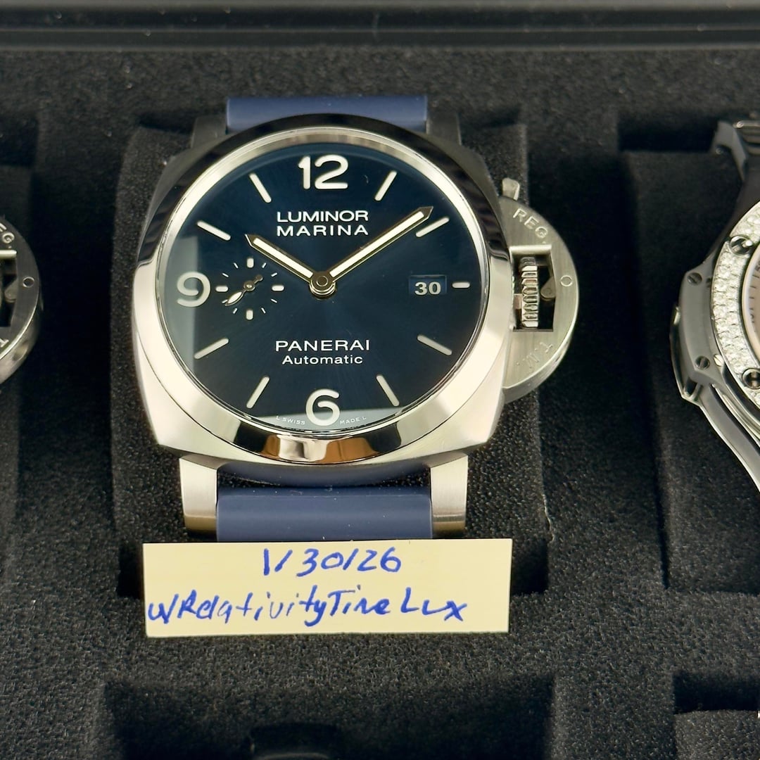 **Key Details:** * **Condition**: In very good condition, rated at 9.7/10, with minimal handling marks. See detailed photos for full transparency. * **Included**: Inner & outer Panerai boxes, strap change tools, an extra Panerai dark blue leather strap, booklet, stickers, and warranty card (dated 2022 with warranty coverage until 2030). Reference: PAM01313 **Asking**: 5450 **Trades Welcome** RelativityTimeLux All pics -> [https://imgur.com/a/pam01313-wJRnvnG](https://imgur.com/a/pam01313-wJRnvnG) Timestamp -> [https://imgur.com/ylnPIb3](https://imgur.com/ylnPIb3)