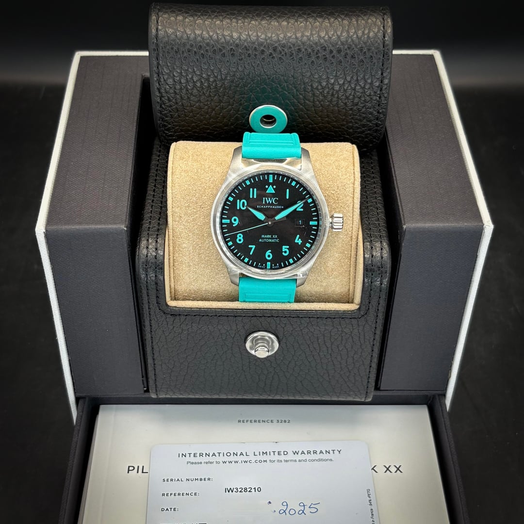 2025 BNIB IWC Pilot’s Watch Mark XX Mercedes-AMG Petronas F1 Team IW328210 $5400 Original MSRP: $6700 This model is IWC’s third official team watch for Mercedes‑AMG PETRONAS Formula One™ Team, emphasizing the brand’s long-standing motorsport partnership. ITEM CONDITION - Brand New in Box/Never worn - Cosmetic Condition: brand new - Functionality: Excellent timegrapher results - Bracelet: Petronas green FEATURES - Warranty card: 7/2025 - Case Size: 40mm - Extra Band: No - Movement: Caliber 32111 - Power Reserve: 120 Hours - Case Material: Titanium with sandblasted finish - Dial Color: Matte black - Crystal: Sapphire - Water Resistance: 100 meters INCLUDES: - [x] Outer Box - [x] Inner Presentation Box - [x] International Warranty Card - [x] Instruction Manual - [x] White Hang Tag - [x] EASX-Change Instruction Card TRADES WELCOME! FULL SETS GOOD CONDITION ONLY CREDIT CARDS ACCEPTED PERFECT REVIEWS ON GOOGLE/EBAY CHECK US OUT @ CHARISWATCHES.COM