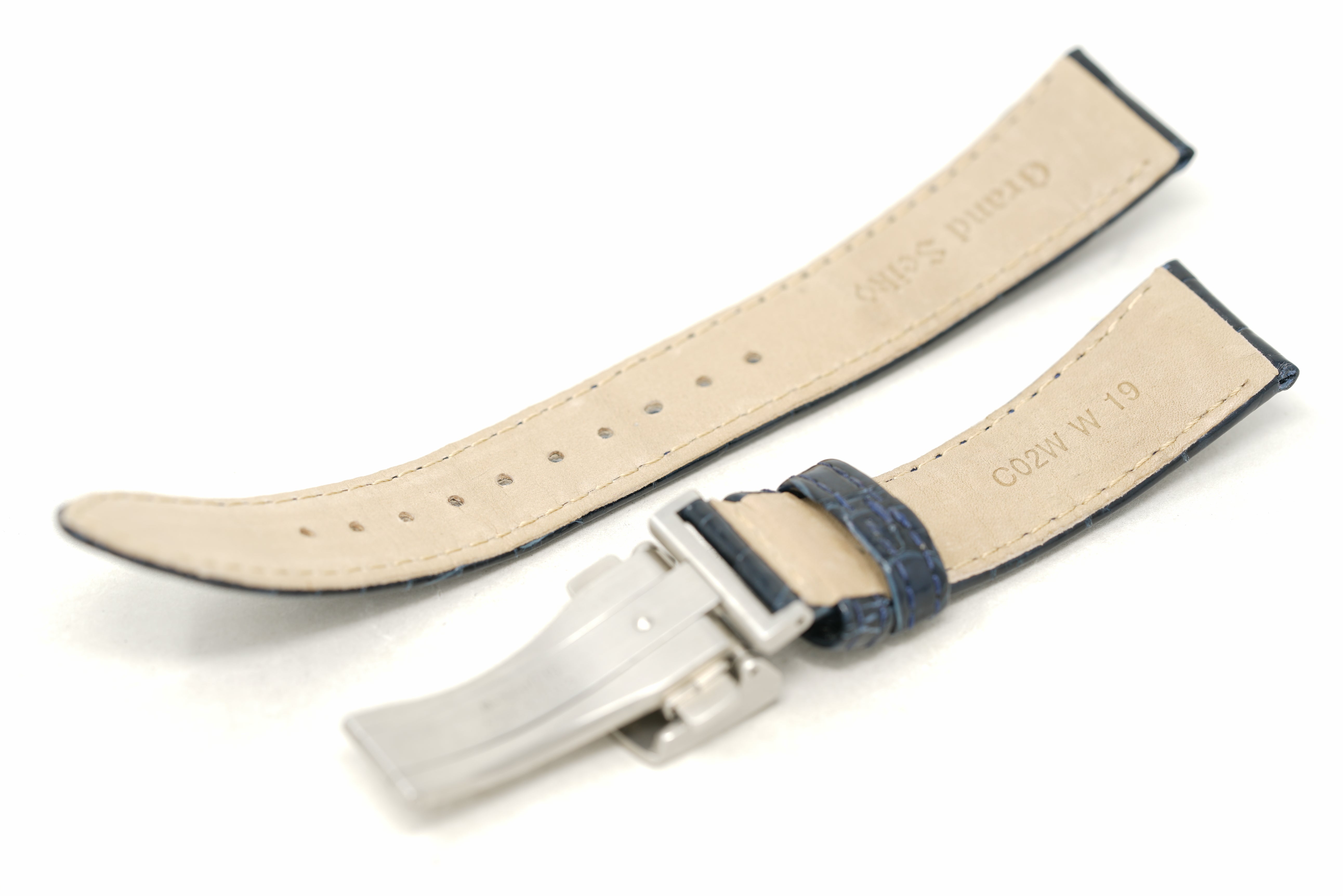 Strap/Bracelet: Stainless Steel Bracelet & Blue Leather Strap