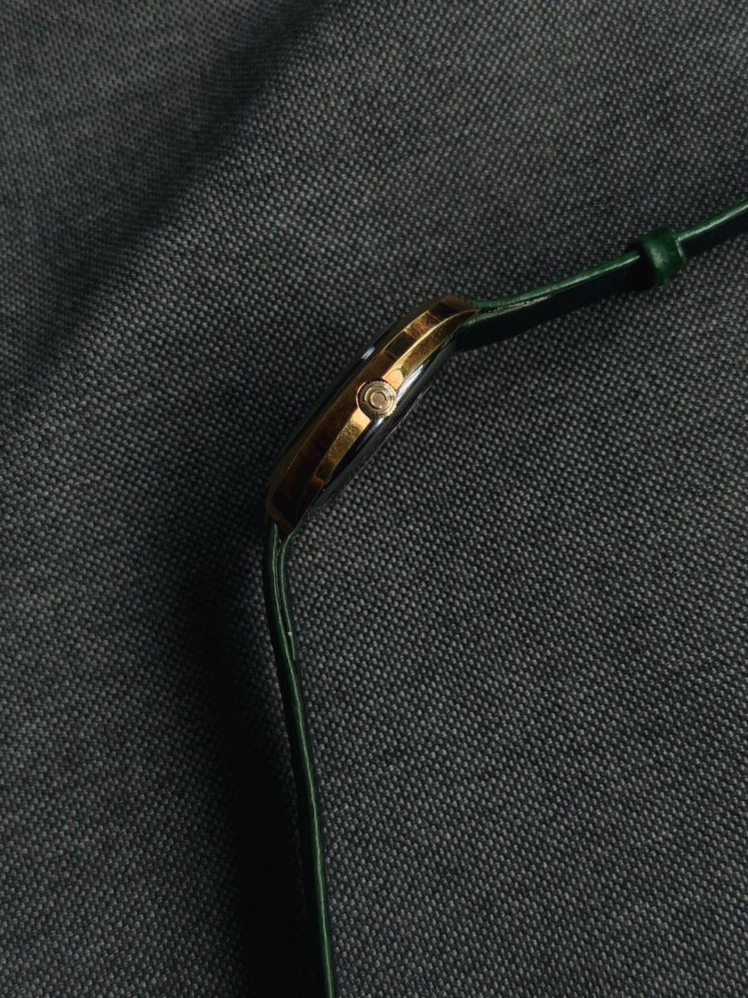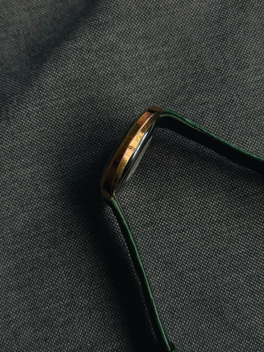 For sale is a Certina Club 2000 with full 70’s attitude. It has a brushed gold-plated case and a deep green dial that are bold without being loud, slim markers, and clean handset. The color combo just works perfectly.
