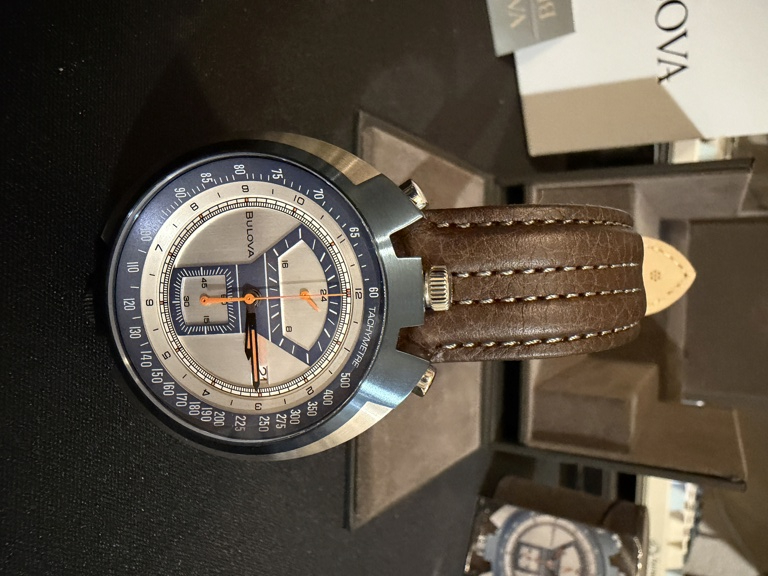Bulova réédition de la fameuse "parcmetre" au vu de sa forme et cadrans. Jamais portée car je n'ai pas eu le coup de coeur. Edition limitée numérotée