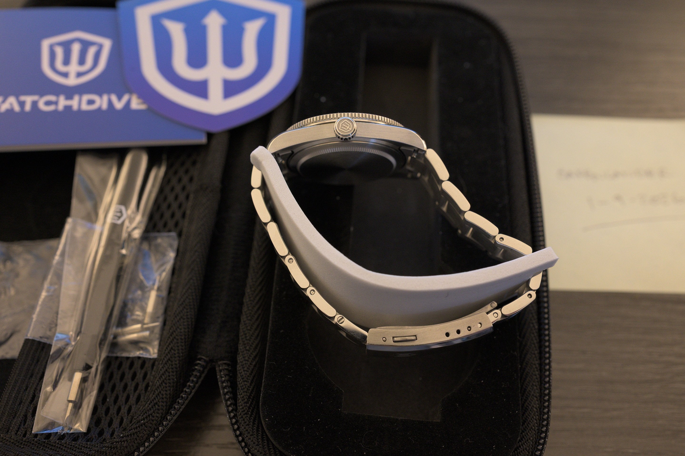 Up for sale is my Watchdives WD7922 purchased in July of last year. Links were removed to see if the bracelet would fit, but replaced as it was still too large (due to the mix of friction pins in the bracelet and the screw pins in the clasp - loses two links of adjustment).