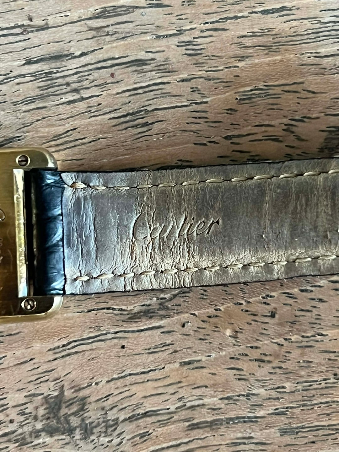 20x28mm case. Movement in excellent condition. Quartz movement. Case with hairline scratches all over and tarnish near the crown and caseback. There is wear on the plating near all four points of the lugs. Crystal with two minor hairline scratches at 6 o'clock. The speck on the top right of the crystal I've confirmed is external dust. Spotless dial. On its original Cartier crocodile leather strap with a Cartier gold plated deployant buckle. There is minor wear on the buckle plating. The strap and buckle are with light to moderate wear. Will fit most wrist sizes. Watch only.